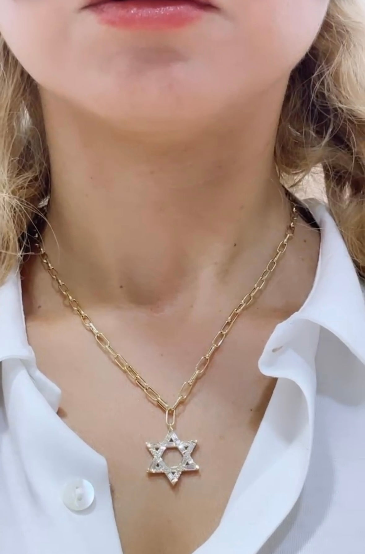 Illuminate your faith with this stunning diamond star of David pendant necklace. Crafted from radiant diamonds, this sparkling piece of jewelry will bring light and beauty to every ensemble. Show off your devotion in the most elegant way possible!