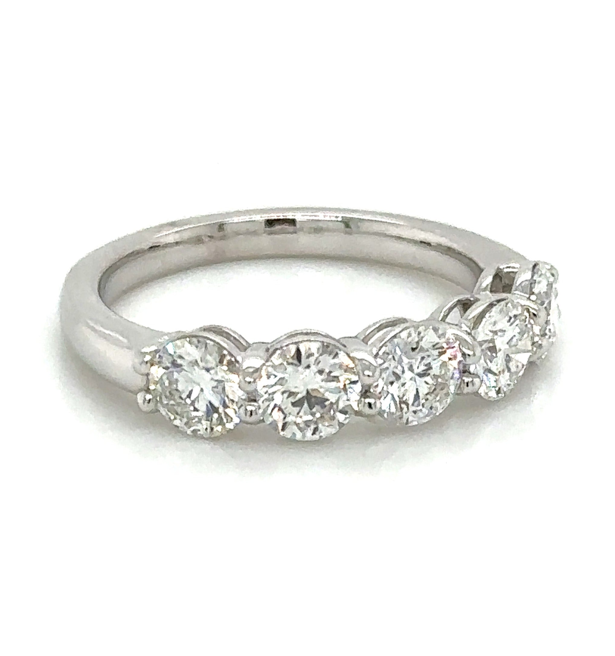 Celebrate your love with this stunning GIA Certified 2.00carat five stone diamond ring! Boasting an exquisite anniversary wedding band design crafted from five shining round brilliant-cut diamonds, this ring is the perfect way to commemorate your special day. Feel the beauty of true love with this unforgettable piece!