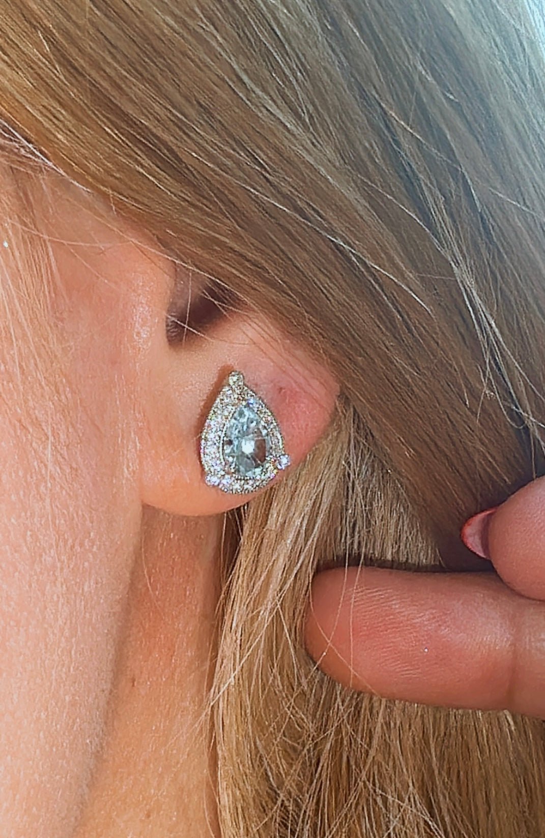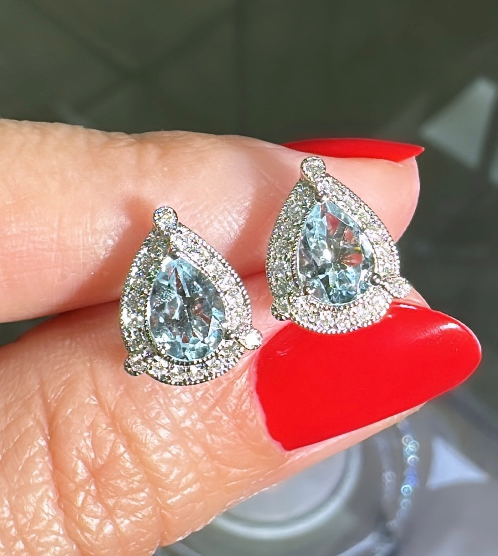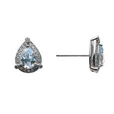 Diamond 1.43ct tw Fancy Pear Shape Aquamarine Center Stud Earrings with Halo