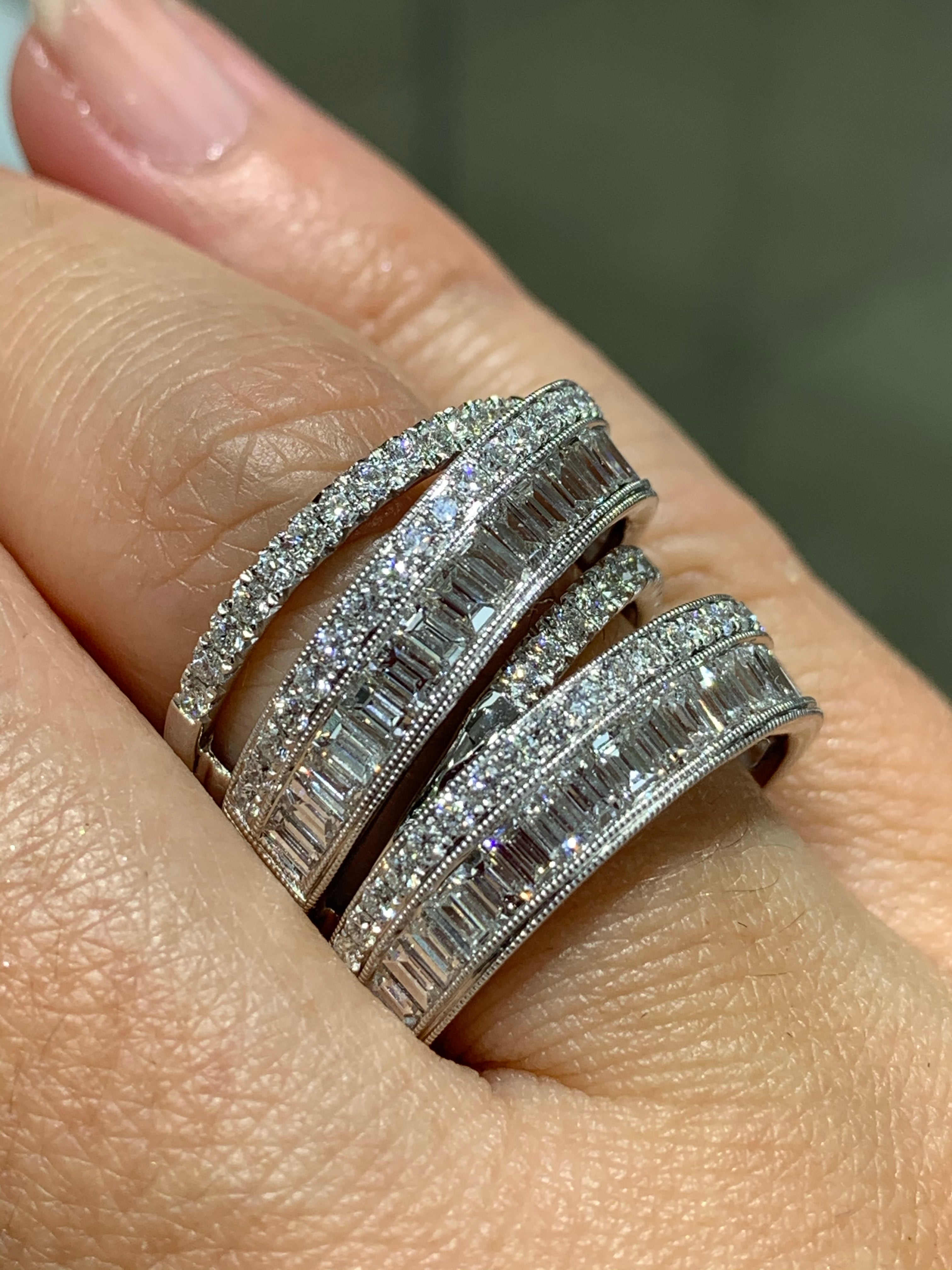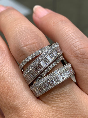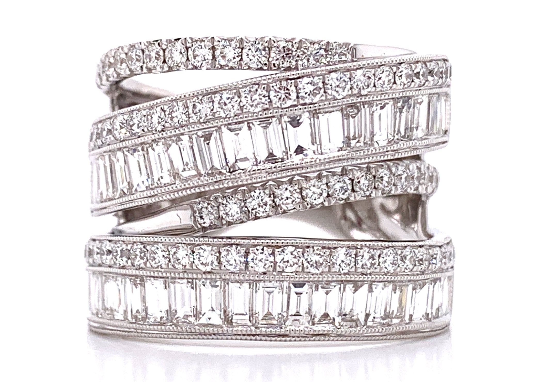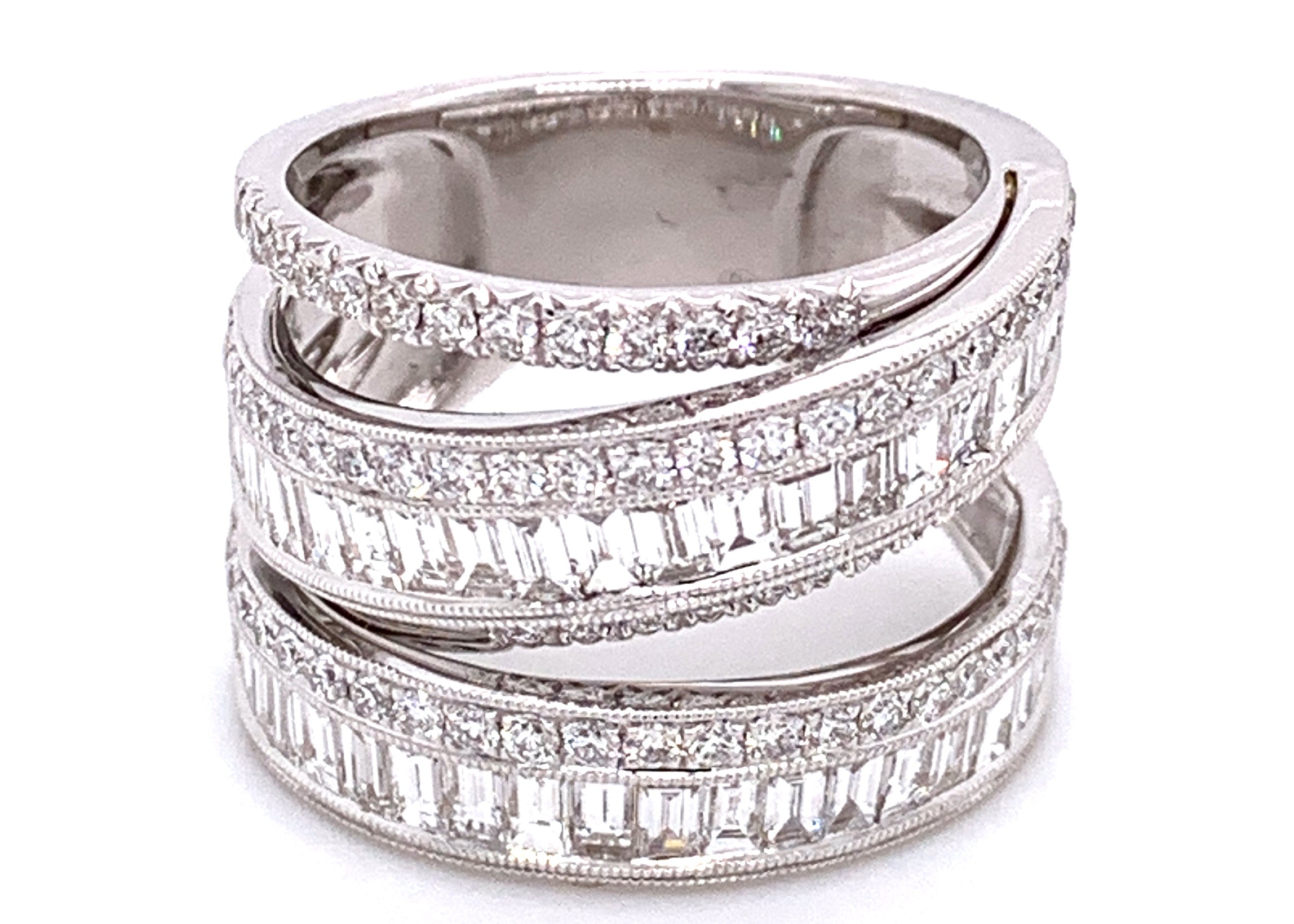 Diamond Baguette & Mix Shape Gold Criss-Cross Ring 2.69ct t.w.