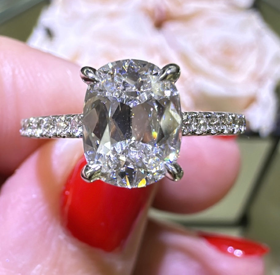 Discover the brilliance and elegance of our GIA certified Henri Daussi cushion engagement anniversary ring. Featuring a stunning 1.98ct t.w. cushion cut diamond, this ring is a true testament to your love and commitment. Indulge in its timeless beauty and make your special moment even more unforgettable.
