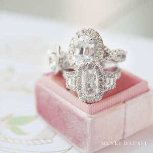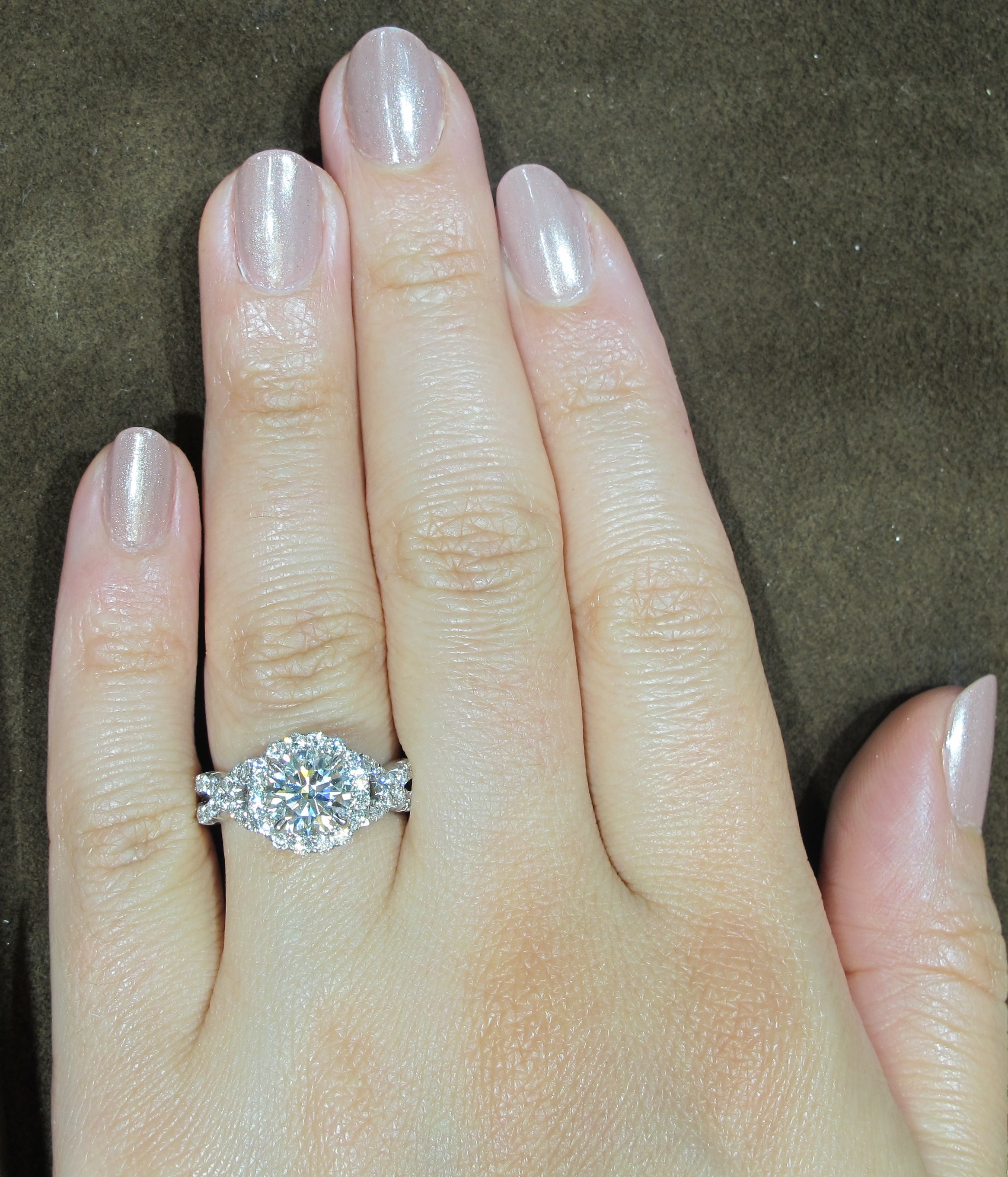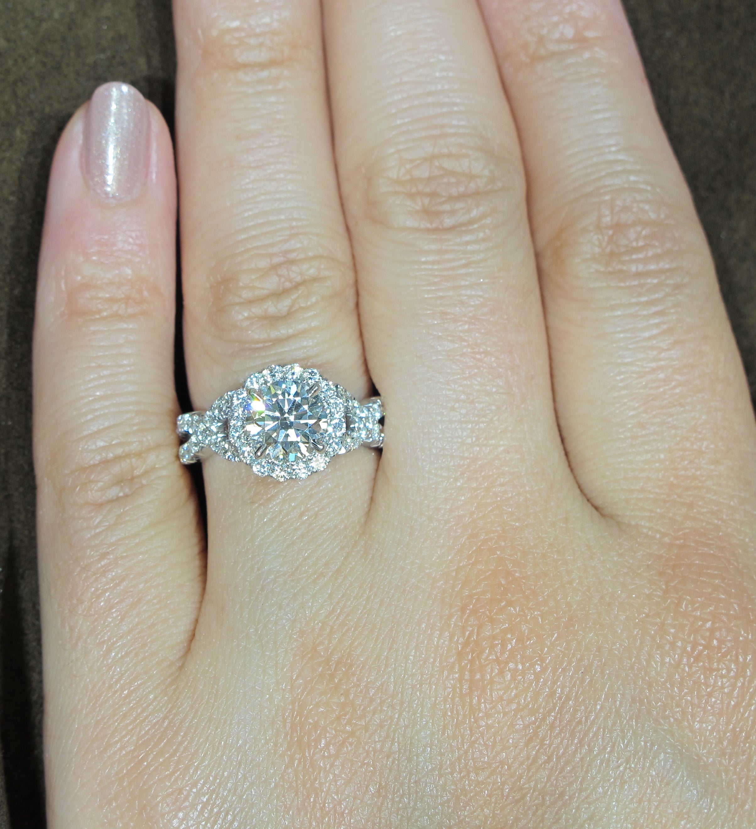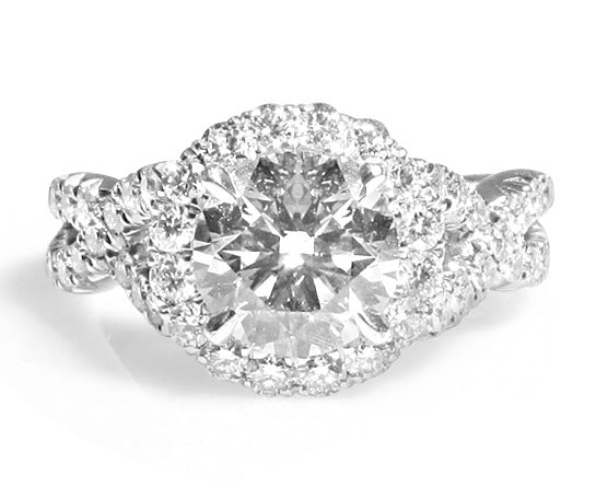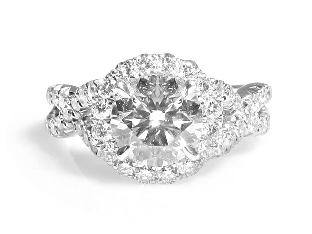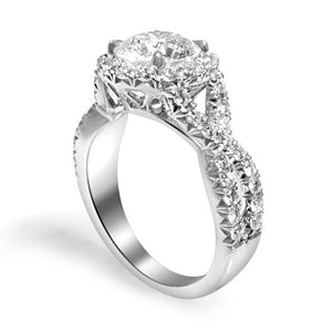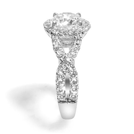 Let your love story sparkle with an exquisite Henri Daussi 0.90ct GIA Certified Round Center Halo 1.62ct tw Interlaced Shank Engagement Ring. With its intricate detail and timeless beauty, it's sure to make an unforgettable impression!