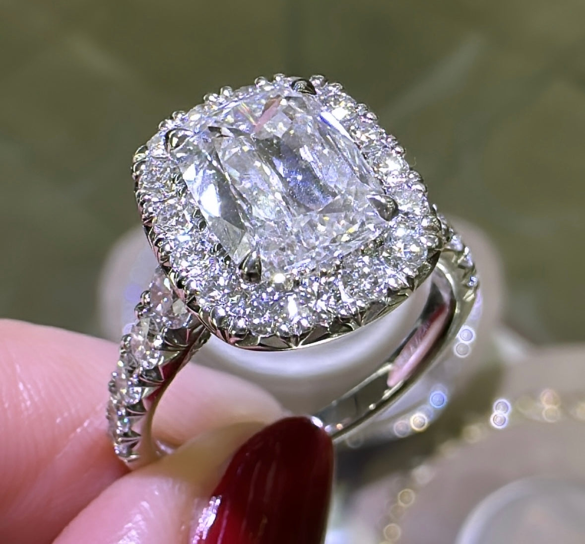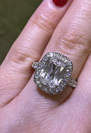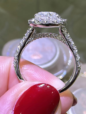 Henri Daussi Designer Signed GIA Certified 3.15ct tw Cushion Halo Diamond Ring