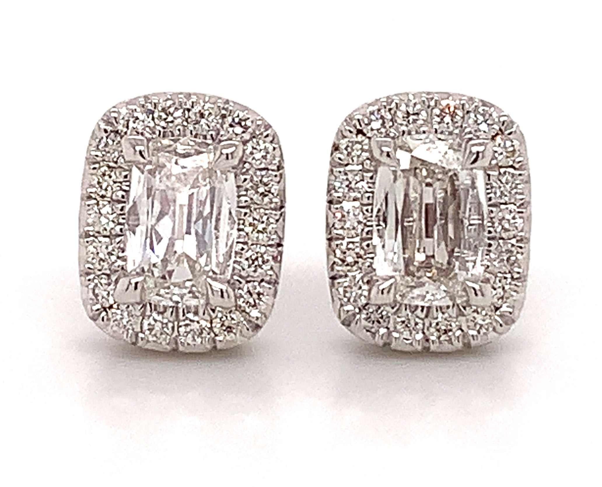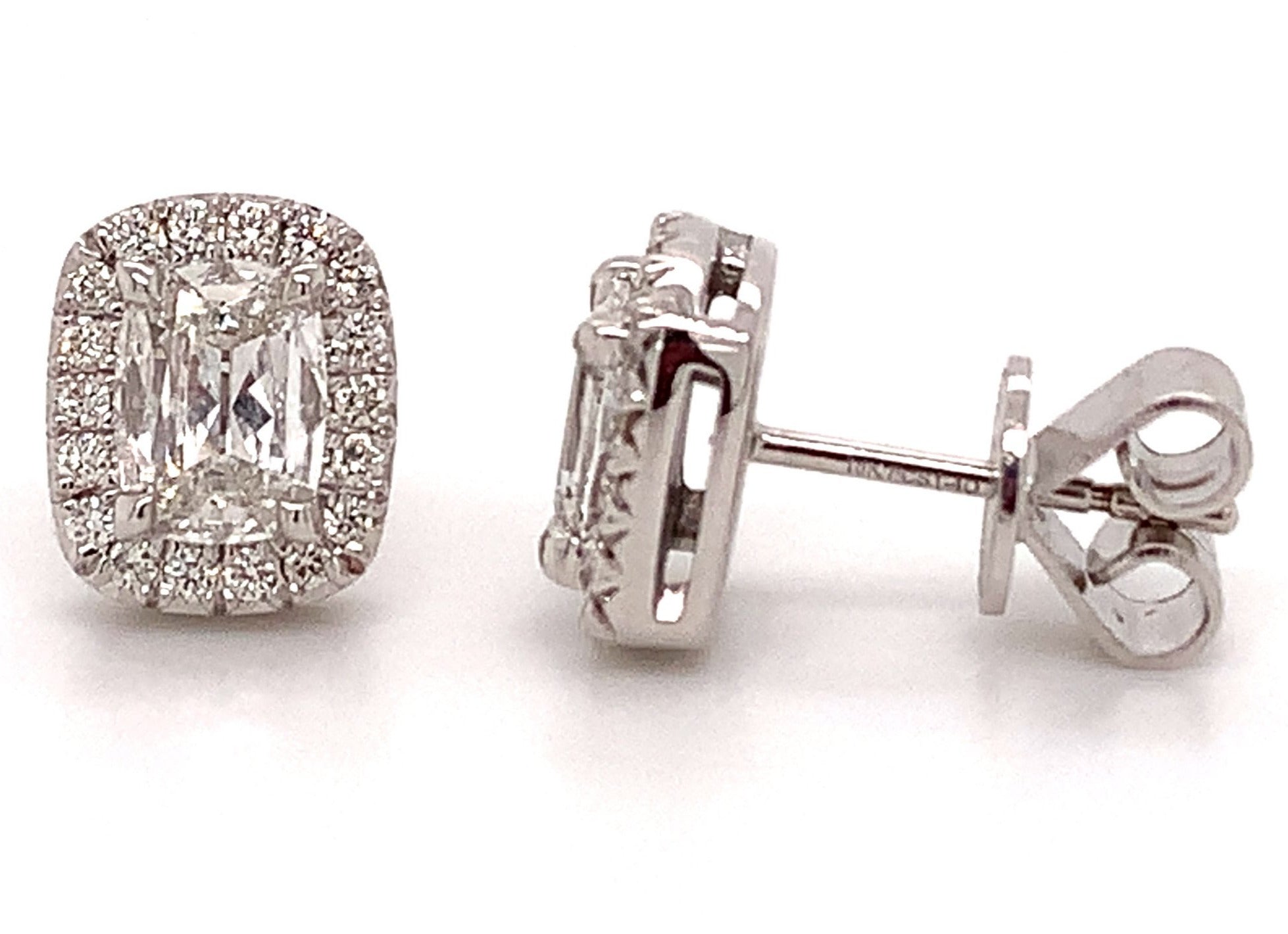 Henri Daussi Signed 1.01ctw Cushion Cut with Halo Diamond Stud Earrings
