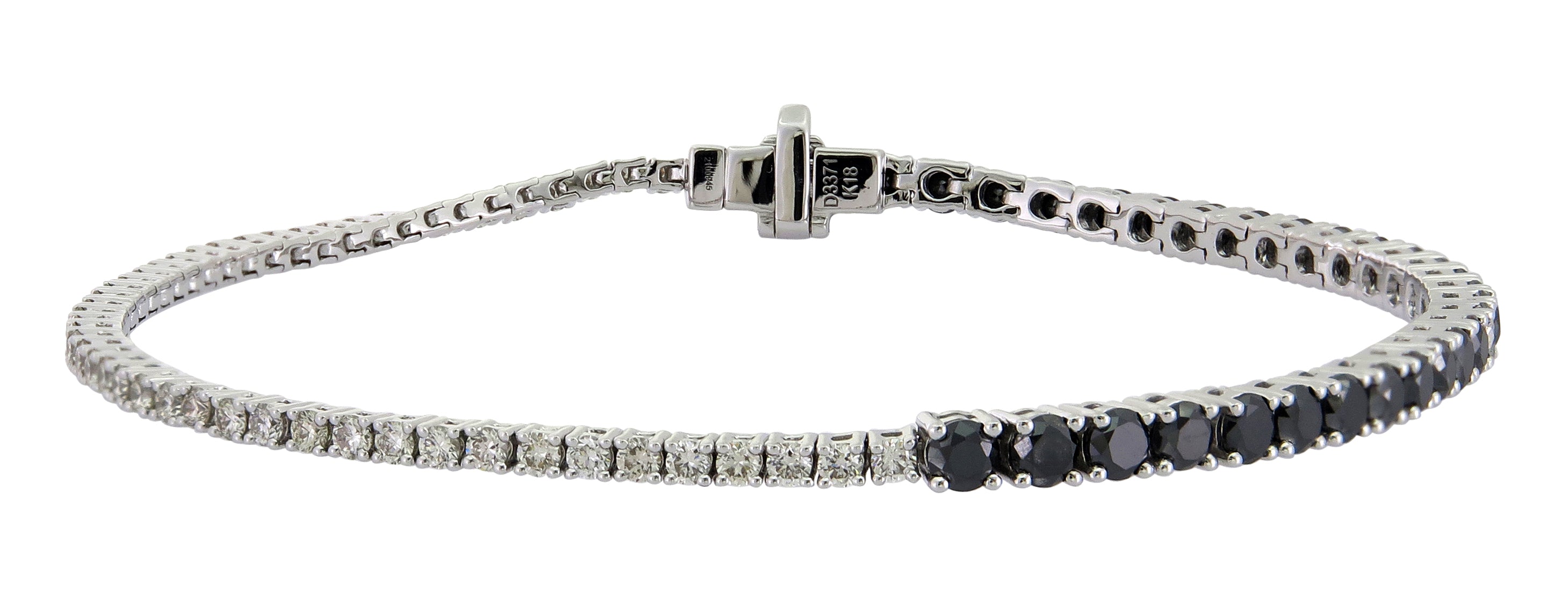 Designed for sophistication and radiance, this ladies black & white diamond 3.37ct tw tennis riviera line bracelet is a timeless classic. Crafted with over 3 carats of brilliant diamonds, make a statement with this stunning accessory! Dare to sparkle.