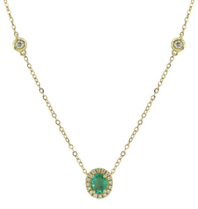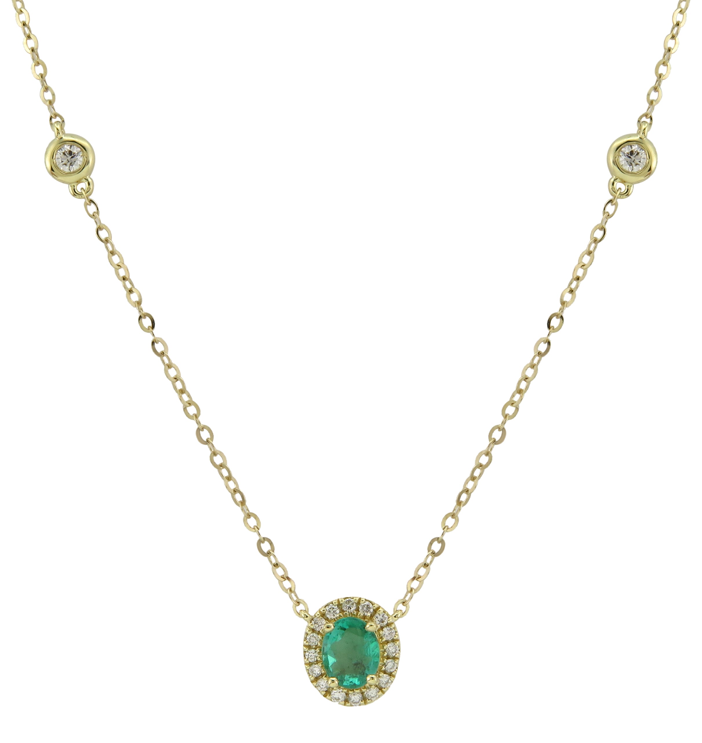 This emerald and diamond oval shape pendant will be a great gift for your loved one. 20 diamonds and 1 oval shape emerald form a beautiful piece of jewelry.