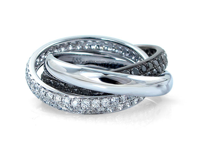 Trinity Ring With White and Black Diamonds - HANIKEN JEWELERS NEW-YORK