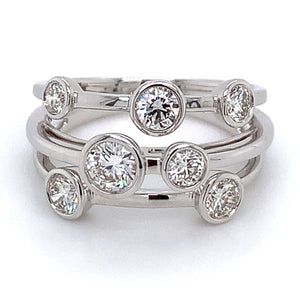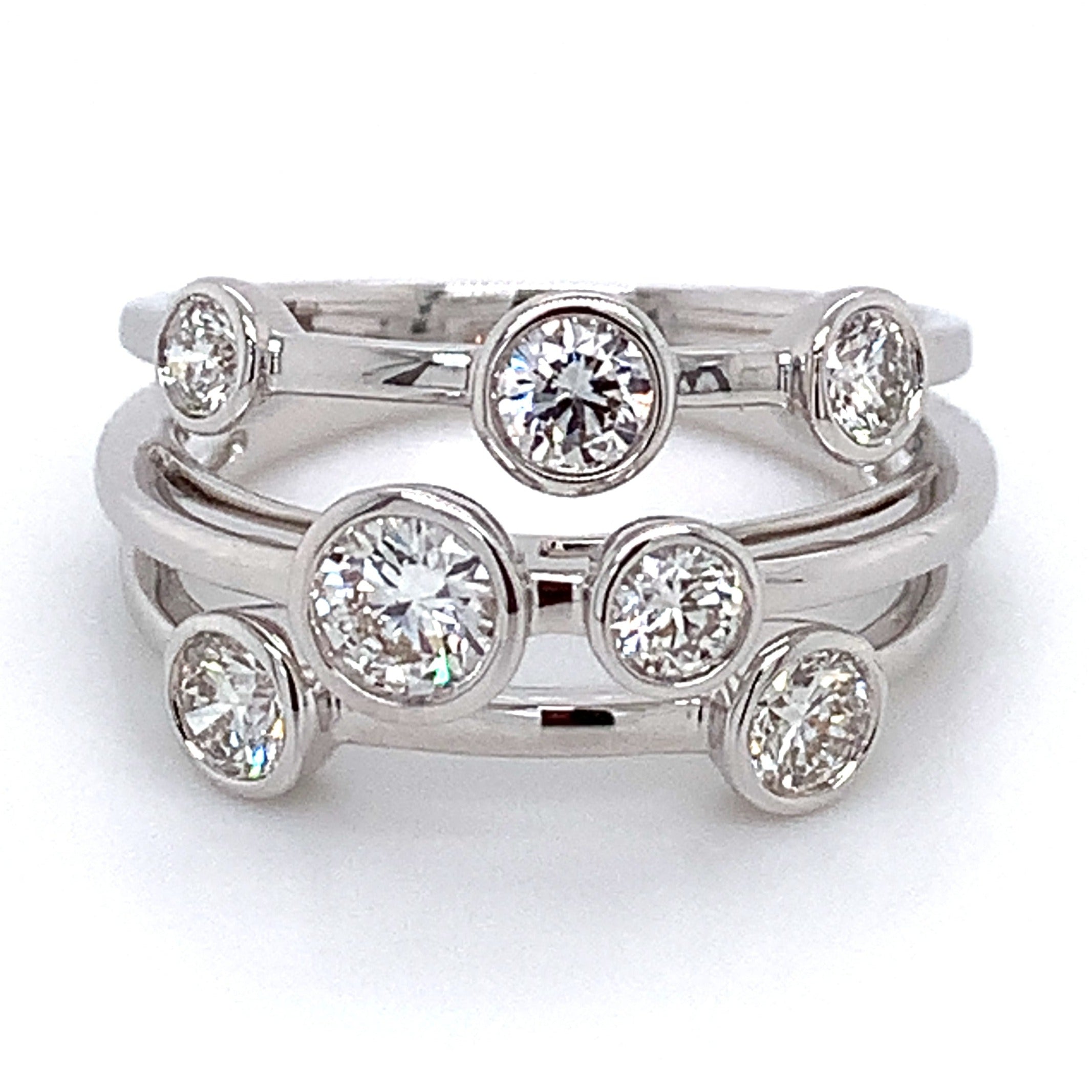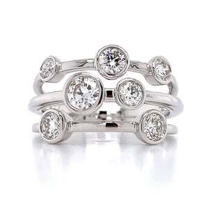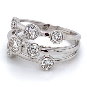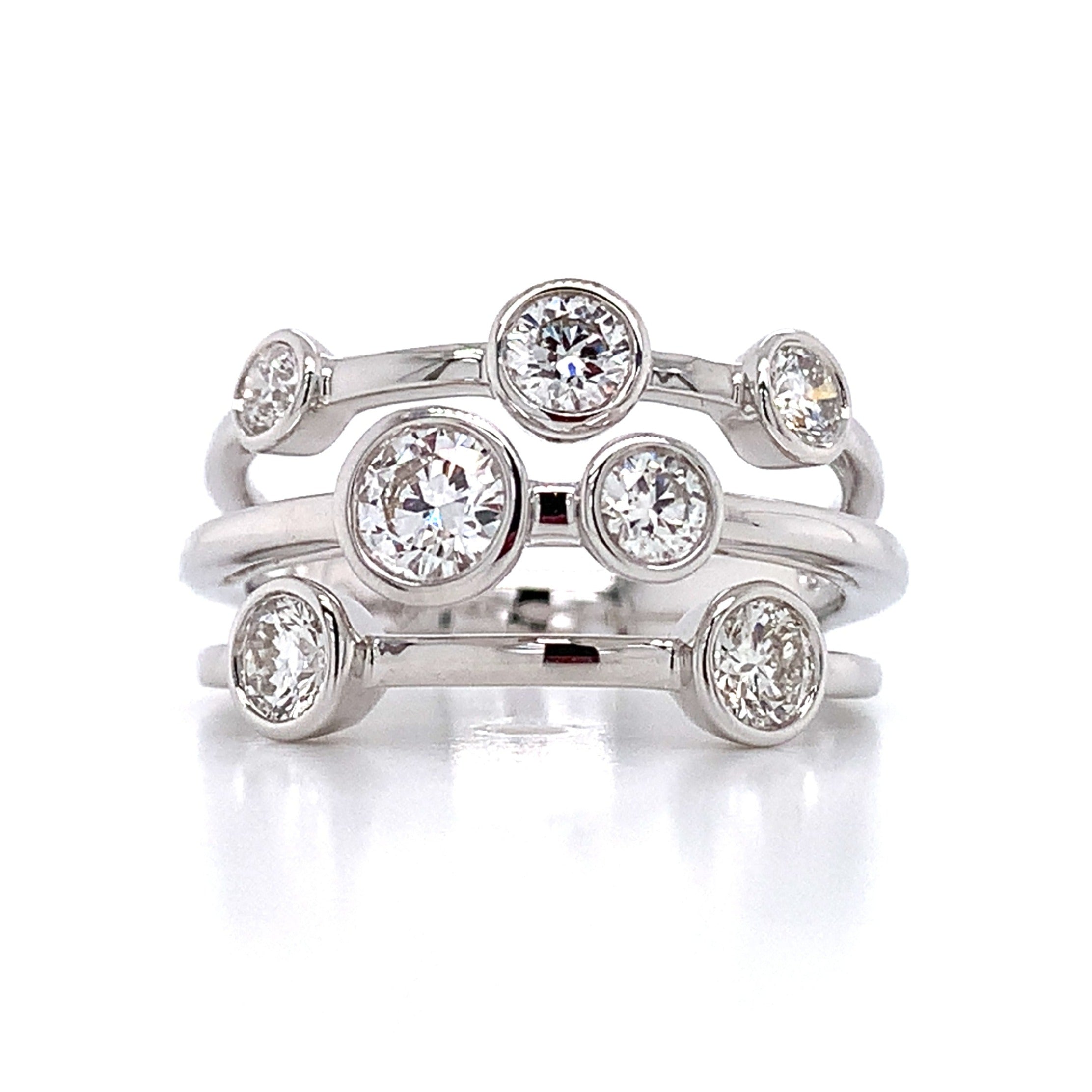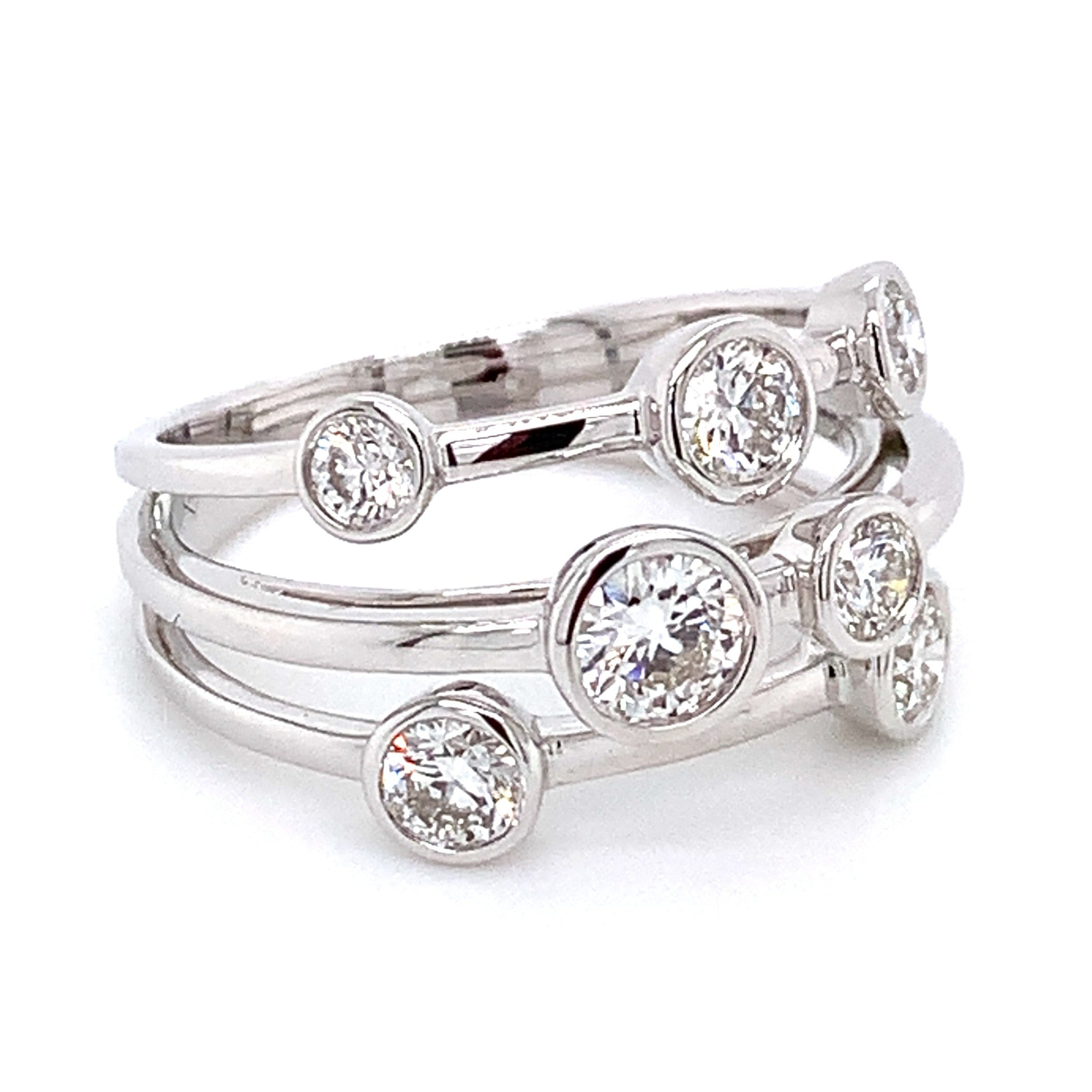 This stunning diamond ring features a unique multi-row overlap design, displaying a dazzling array of 0.99 carats of bezel-set diamonds. With its bold and modern style, this ring is the perfect accessory for adding a touch of luxury and sophistication to any outfit. Own the spotlight with this show-stopping piece!