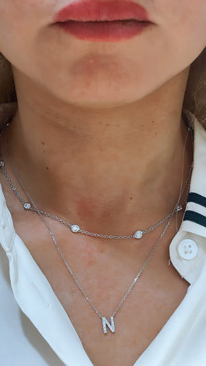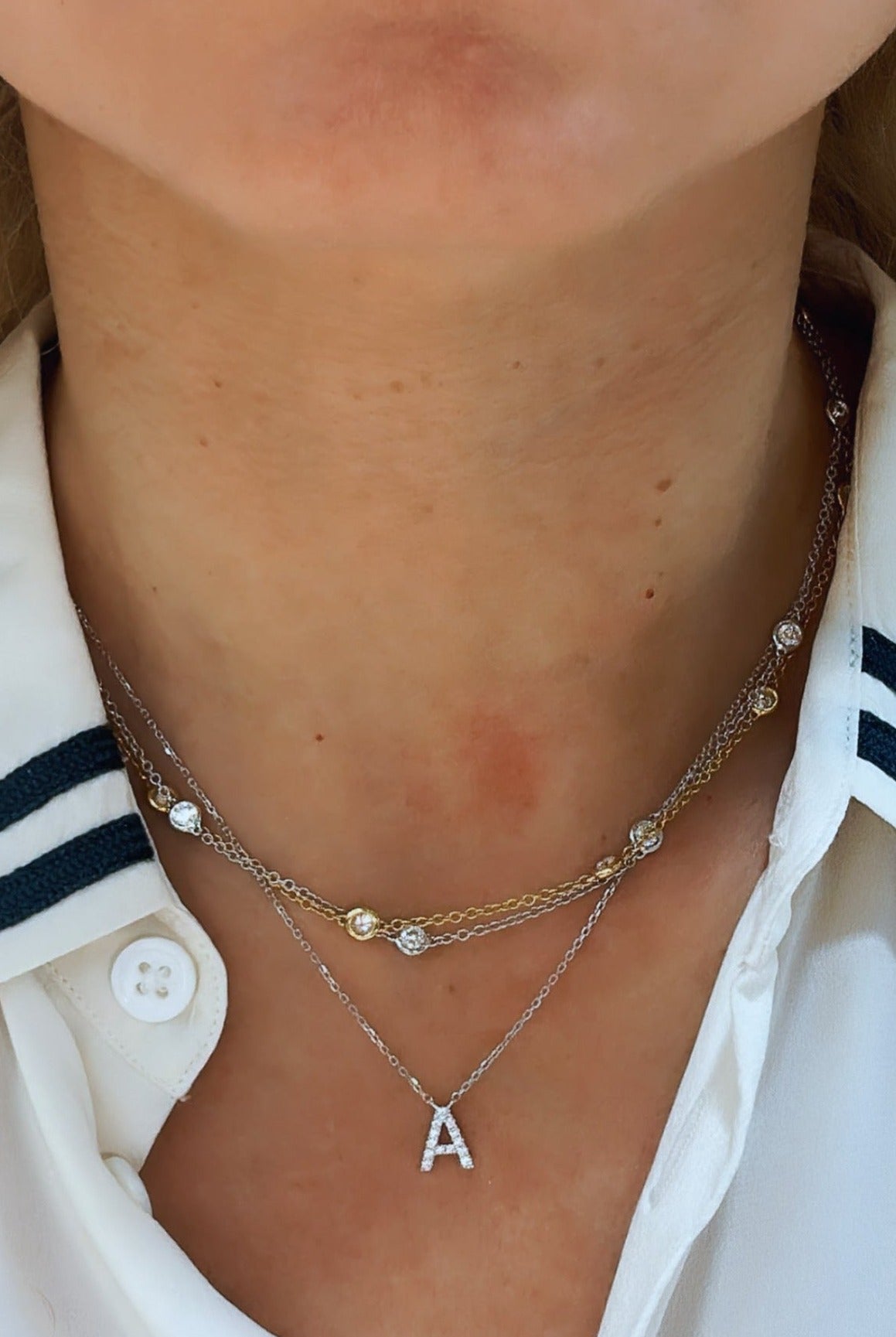 A beautiful Initial pendant hangs from a delicately designed chain. Once you slip this on, you will never want to take it off. Wear it alone for just a touch of sparkle, but when you want a more fashion forward look, all you have to do is layer it with other items in your jewelry collection to created a bold and stylish result.Make it personal-diamonds line these block initial necklaces, perfect for everyday wear and layering.