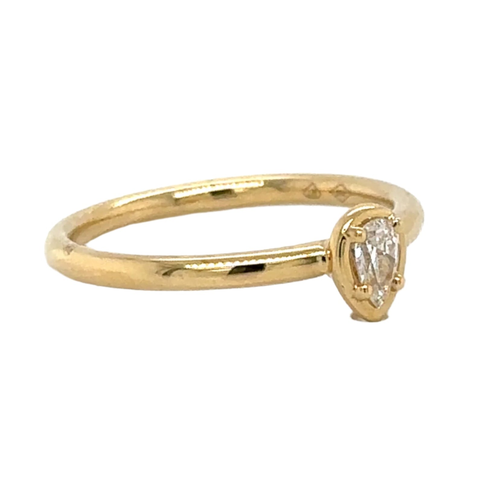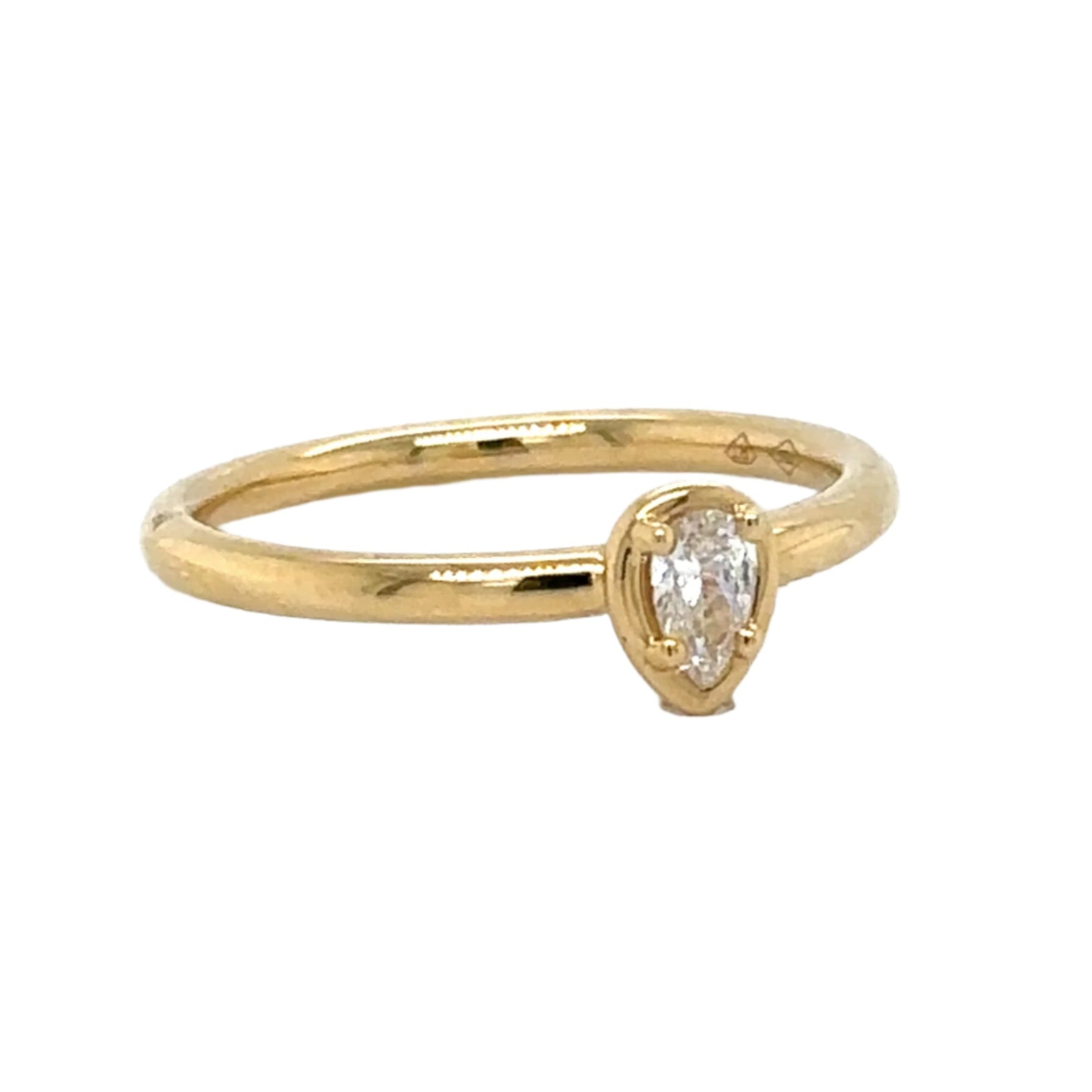 Elevate your style with our 0.15carat pear-cut diamond stackable ring! This stunning ring features a sparkling pear-cut diamond that adds just the right amount of glamour to any look. Perfect for stacking or wearing on its own.
