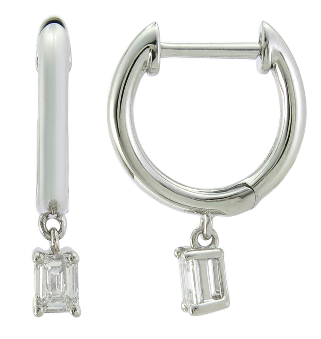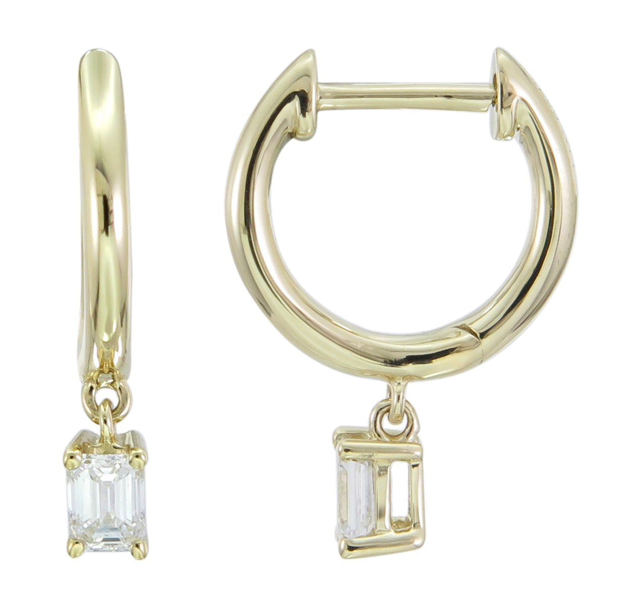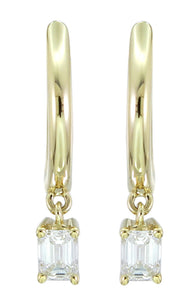 Elevate your elegance with our emerald-cut diamond drop huggie earrings. These stunning huggies feature 0.18 carats of precision-cut diamonds that catch light from every angle, creating a mesmerizing sparkle that demands attention. The sophisticated drop design adds movement and dimension.