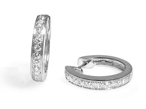Fabulous petite diamond hoop earrings are inlaid with a total of 0.23carats diamonds. They are fashion-forward but wonderful for any special occasion that you might have coming up.