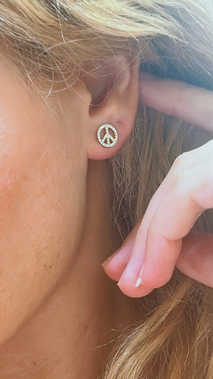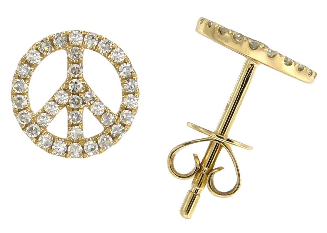 Spread peace and love with these delicate diamond earrings! Featuring a shining 0.23ct t.w. pave diamond peace symbol, these elegant studs are perfect for adding a subtle touch of shimmer to any look. Show your commitment to making a more peaceful world with the gift of these glittering earrings!