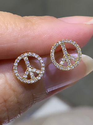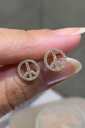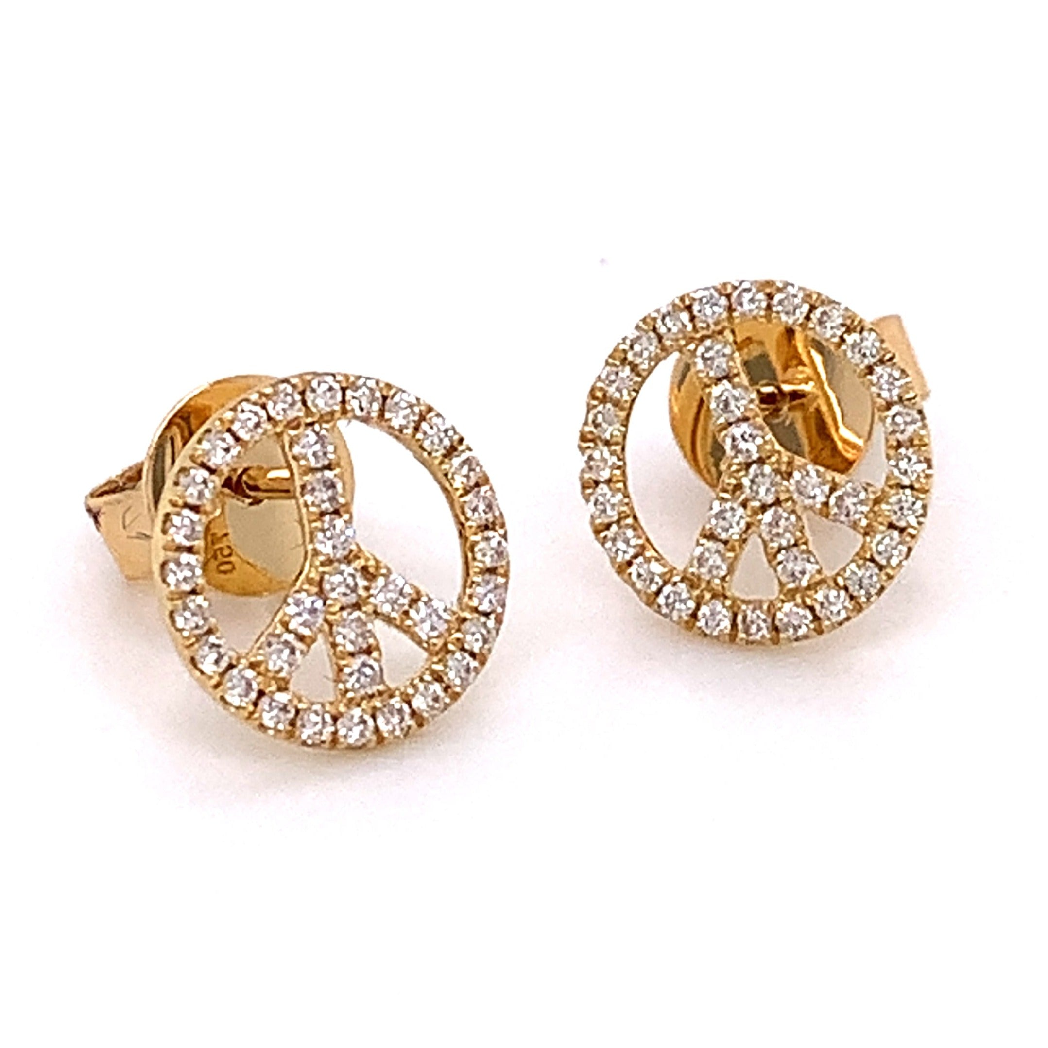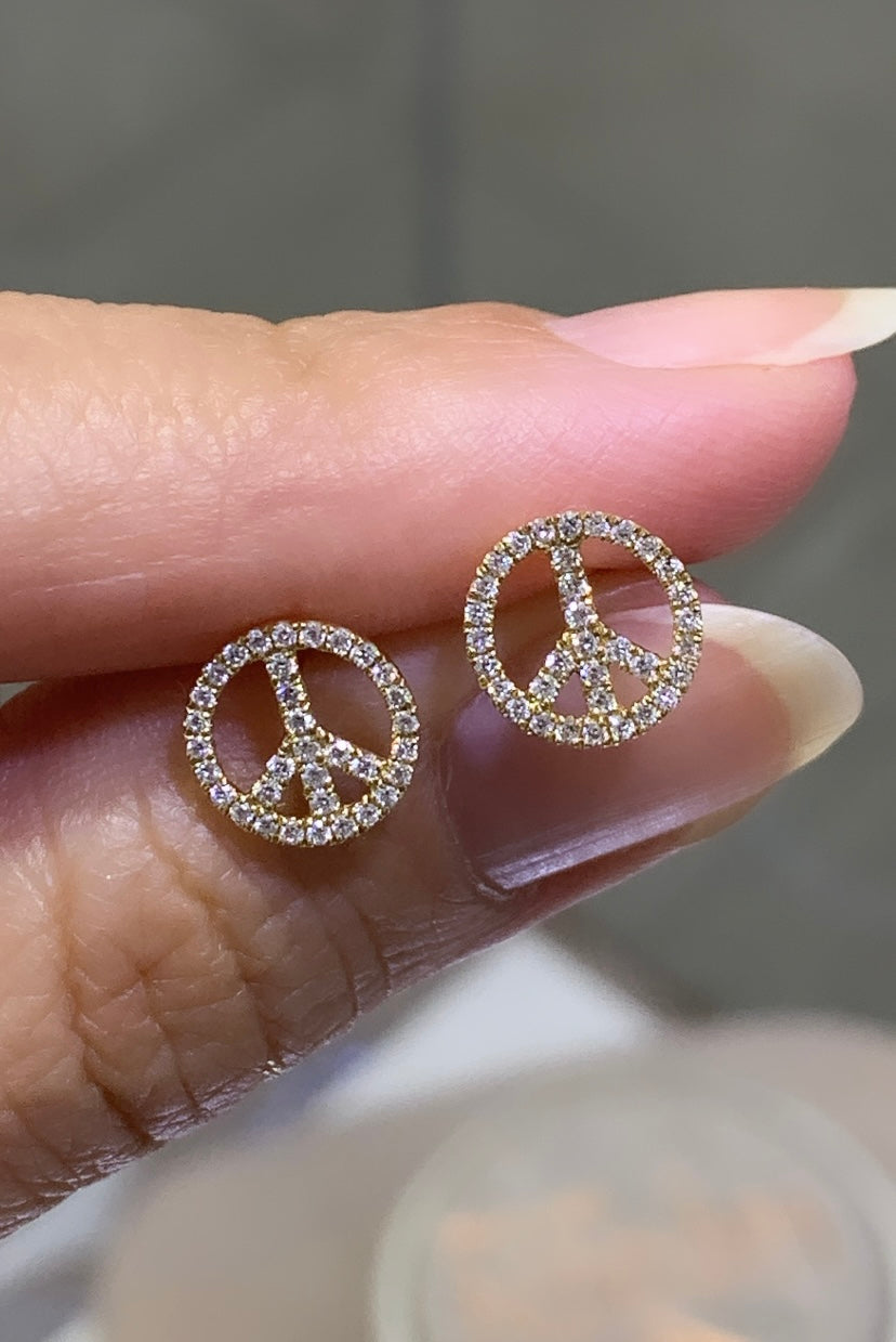 Spread peace and love with these delicate diamond earrings! Featuring a shining 0.26CT T.W. pave diamond peace symbol, these elegant studs are perfect for adding a subtle touch of shimmer to any look. Show your commitment to making a more peaceful world with the gift of these glittering earrings!