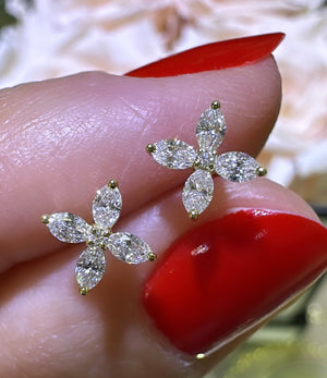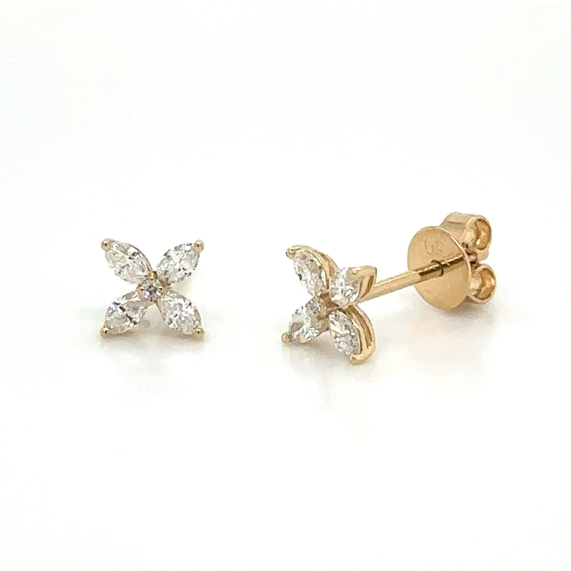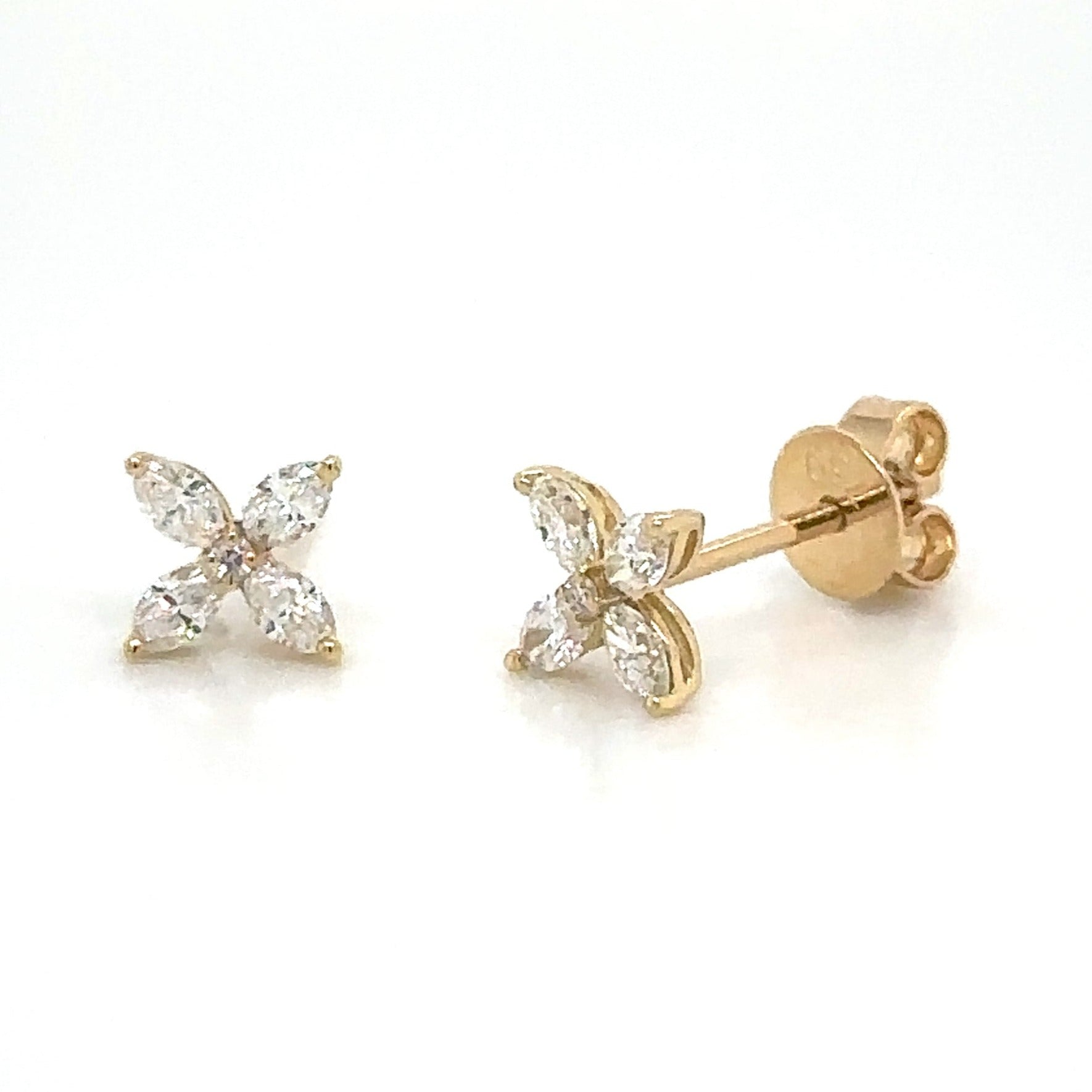 Unleash your style with our stunning 0.33ct tw diamond flower shape marquise stud earrings! Crafted with precision, these earrings feature a delicate flower shape design with sparkling marquise diamonds.