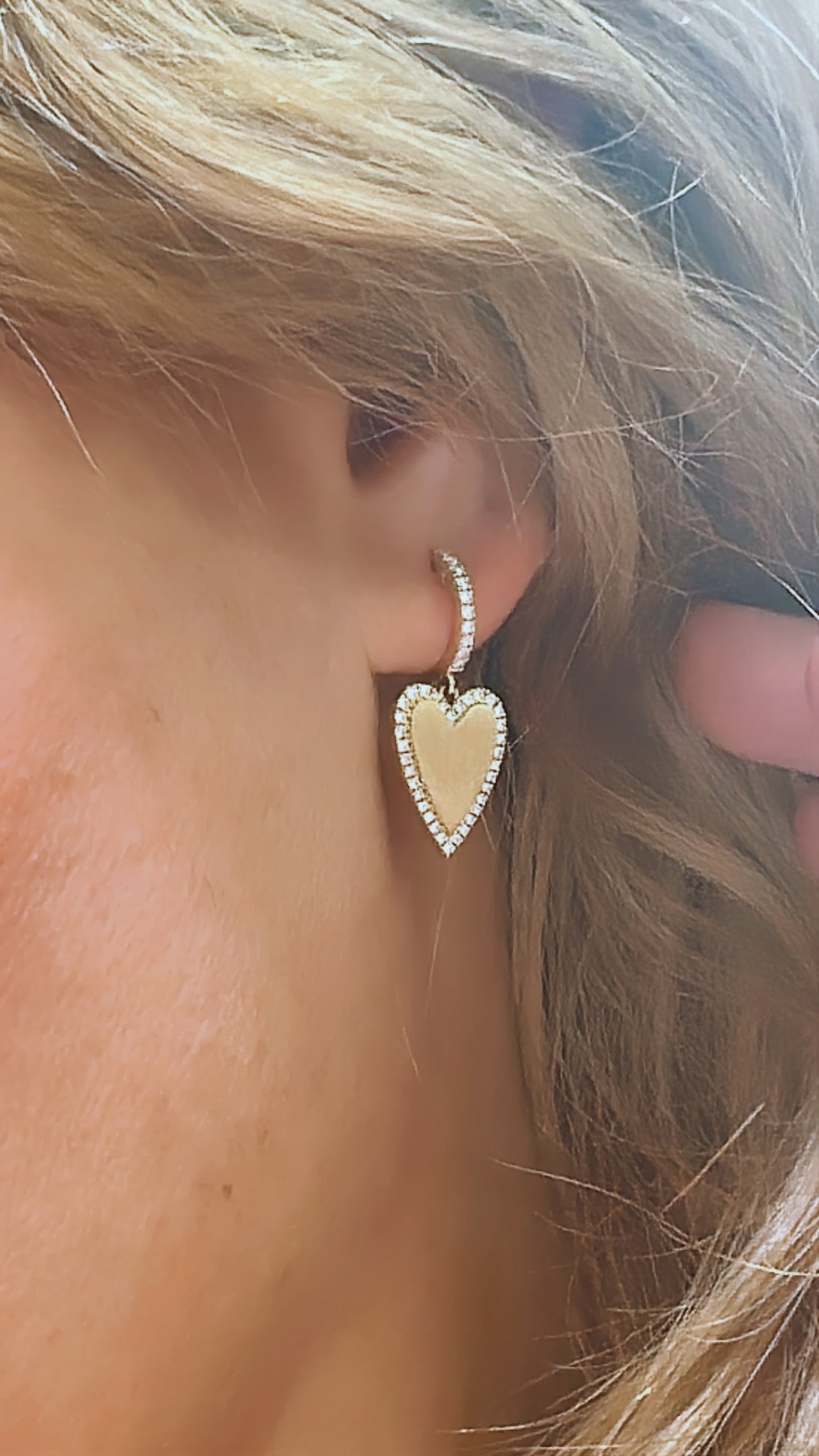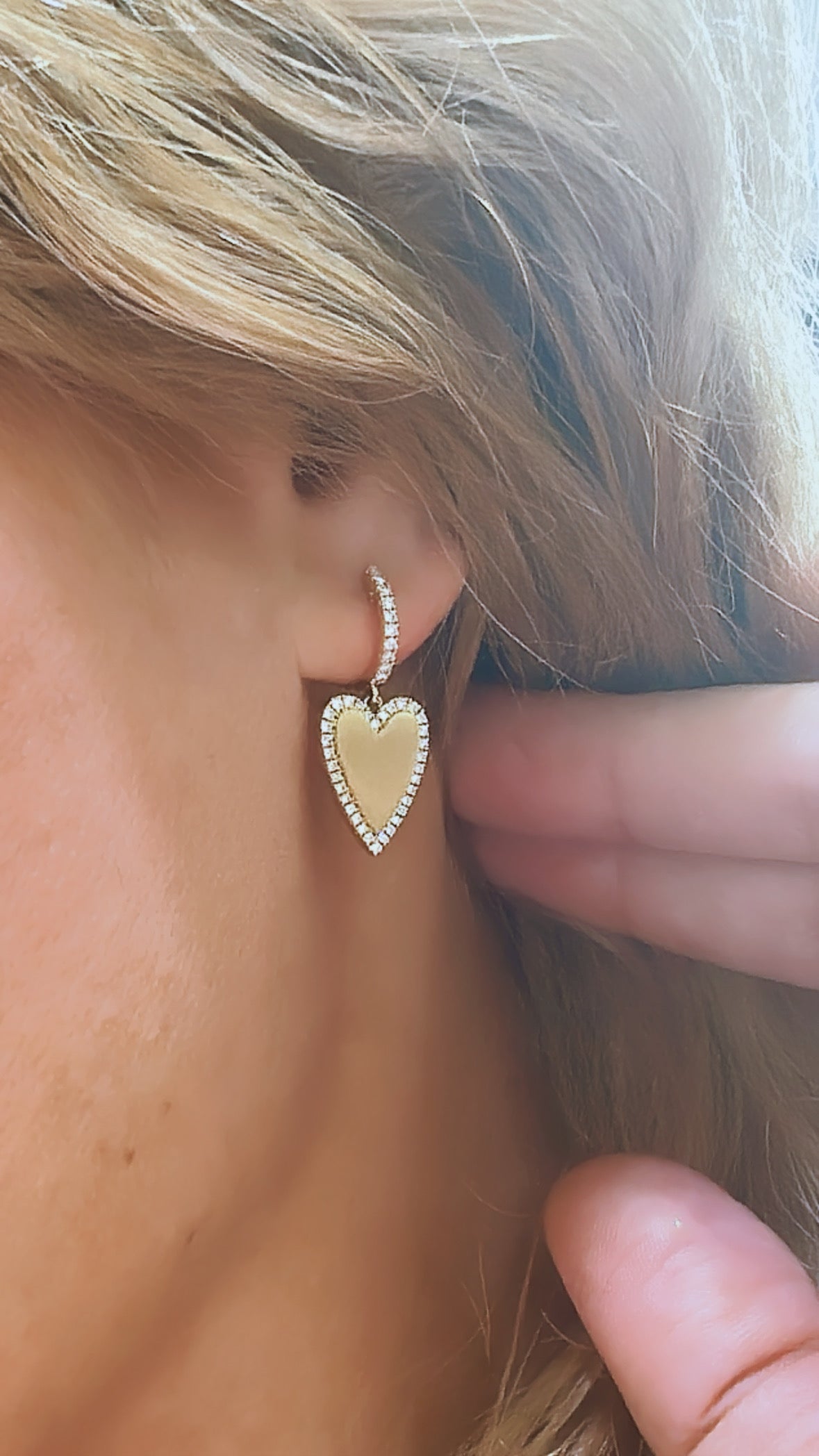 0.33ct tw Heart Shaped Pave Edge Diamond Dangling Earrings