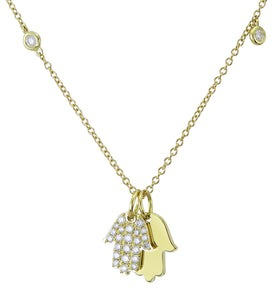 0.36ct tw Double Protection, Blessing Hamsa's Hand Pendant Diamond Pave Necklace