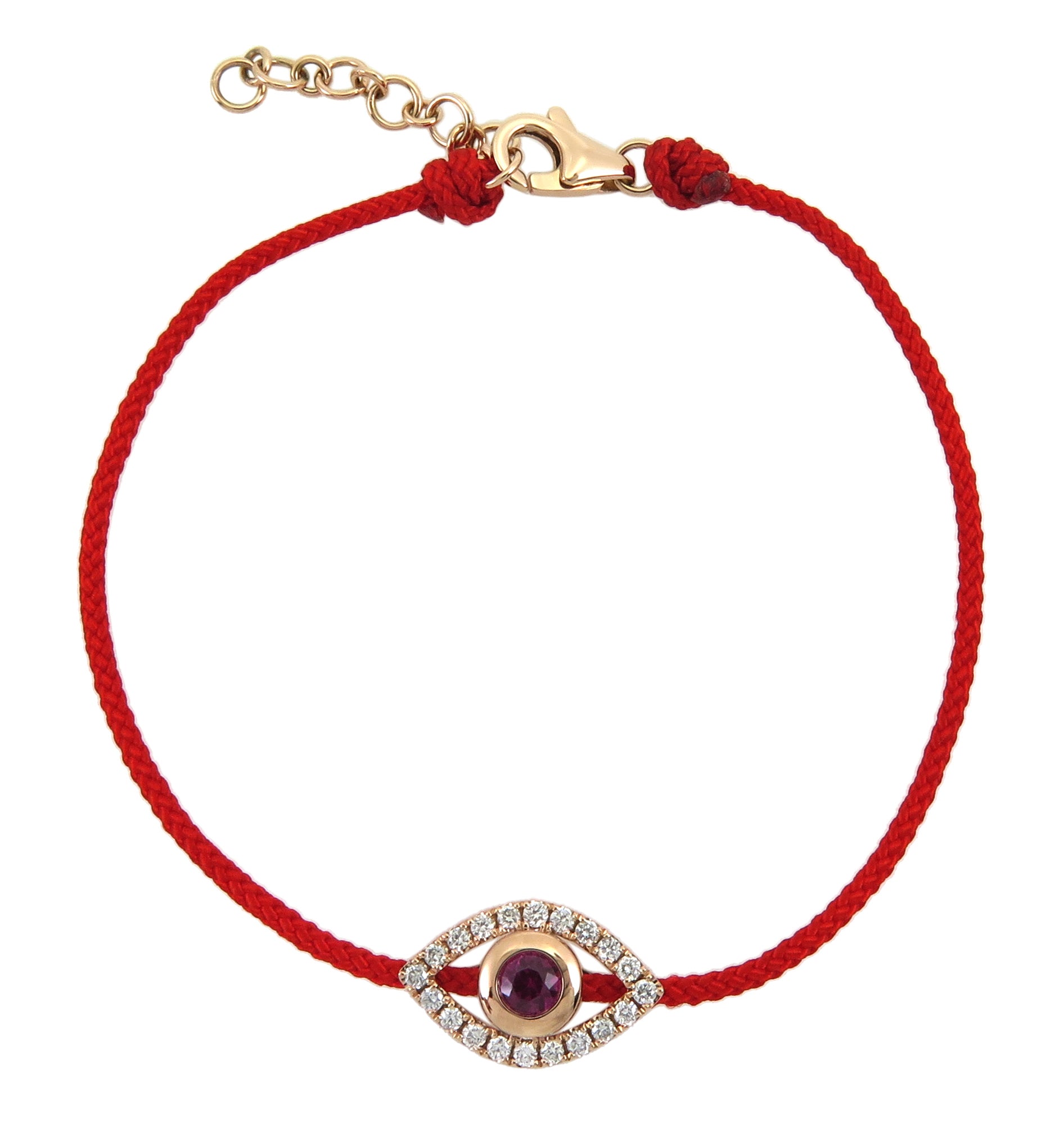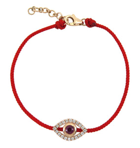 This elegant and eye-catching 0.42ct tw protective evil eye diamond & red ruby cord bracelet is the perfect accessory to ward off any negative vibes. The diamond and ruby charm sparkles and shines with a protective energy, while the luxurious cord wraps comfortably around your wrist. Feel secure and stylish with this gorgeous bracelet!