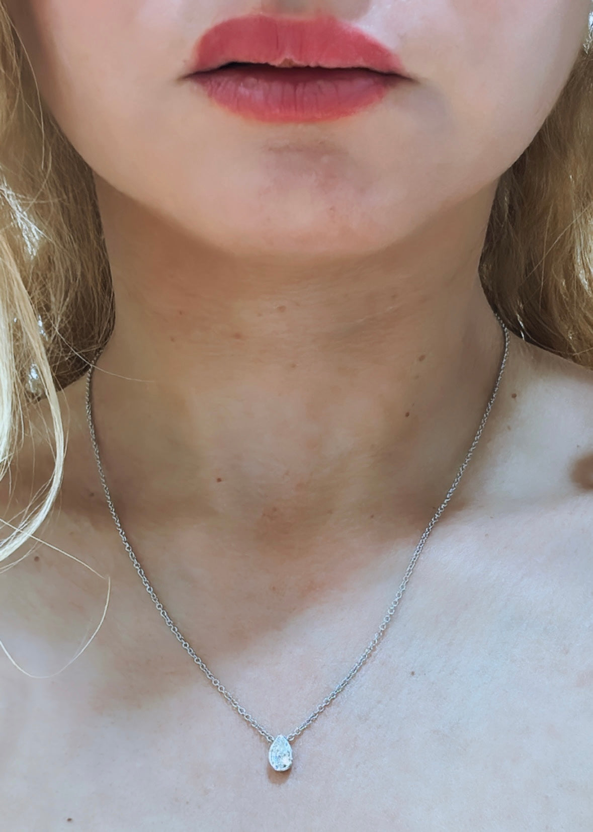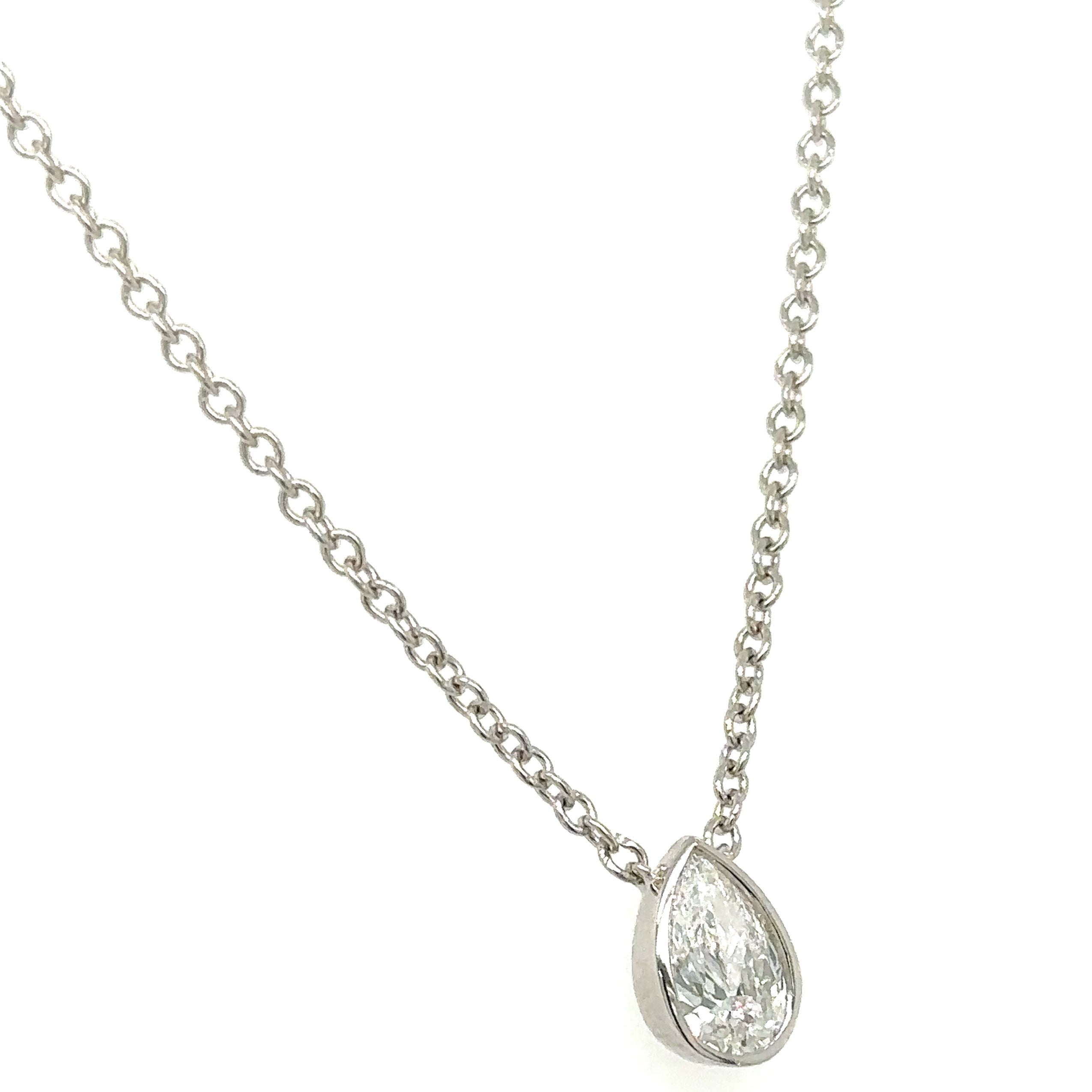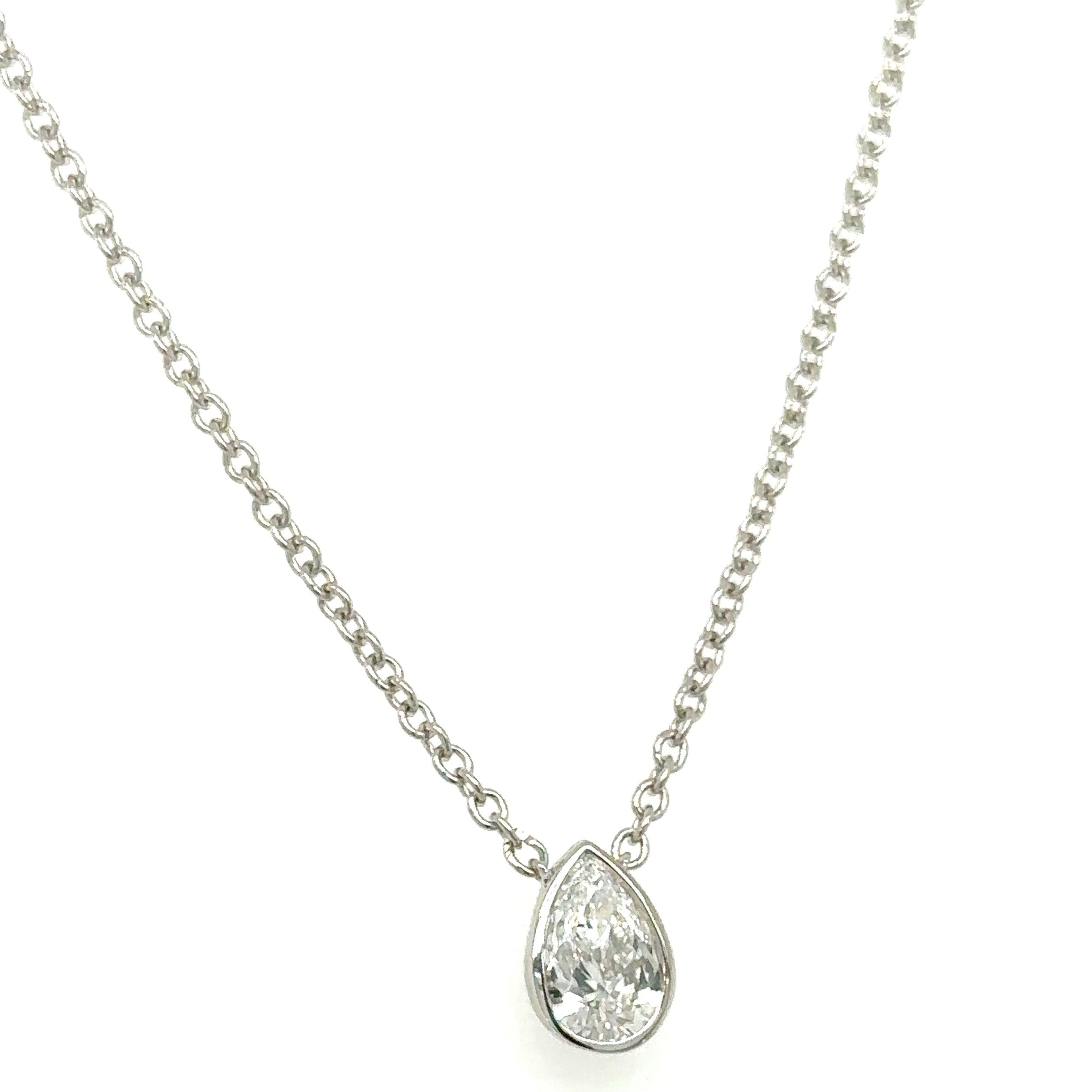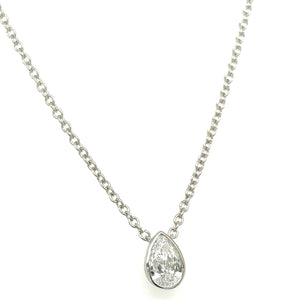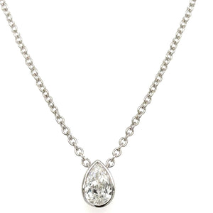 This 0.50carat diamond pendant necklace is a classic beauty. Crafted in a stunning pear-shape and bezel-set, its laboratory-grown diamond sparkles with sophistication and elegance. Enjoy a timeless look that will add subtle sophistication to any outfit.