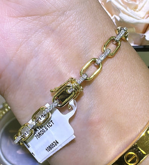 This stunning 0.51ct tw diamond pave two tone link bracelet features sparkly pave diamonds set in two contrasting tones, making it the perfect piece to add a touch of elegance and sophistication to any outfit. With its eye-catching design and high-quality materials, this bracelet is sure to make a lasting impression.