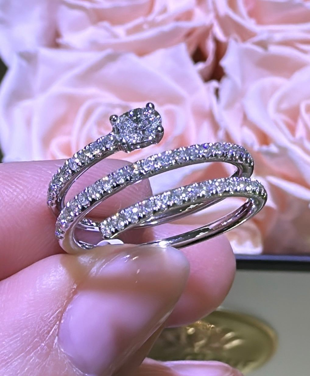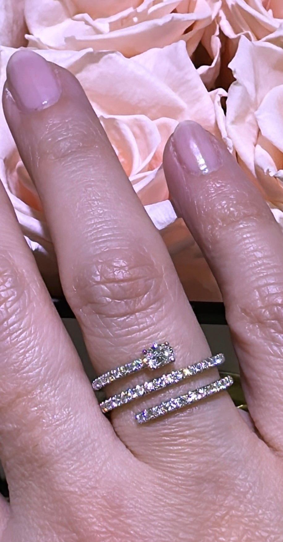 This stunning 0.51 ct tw triple spiral with oval-cut accent diamond triple wrap ring will make you stand out. Crafted with radiant oval diamond delicately woven into a unique swirl of gold and pave diamonds, this exquisite piece will sparkle with your every move. Get ready to make an elegant statement!
