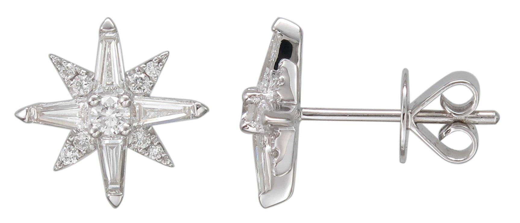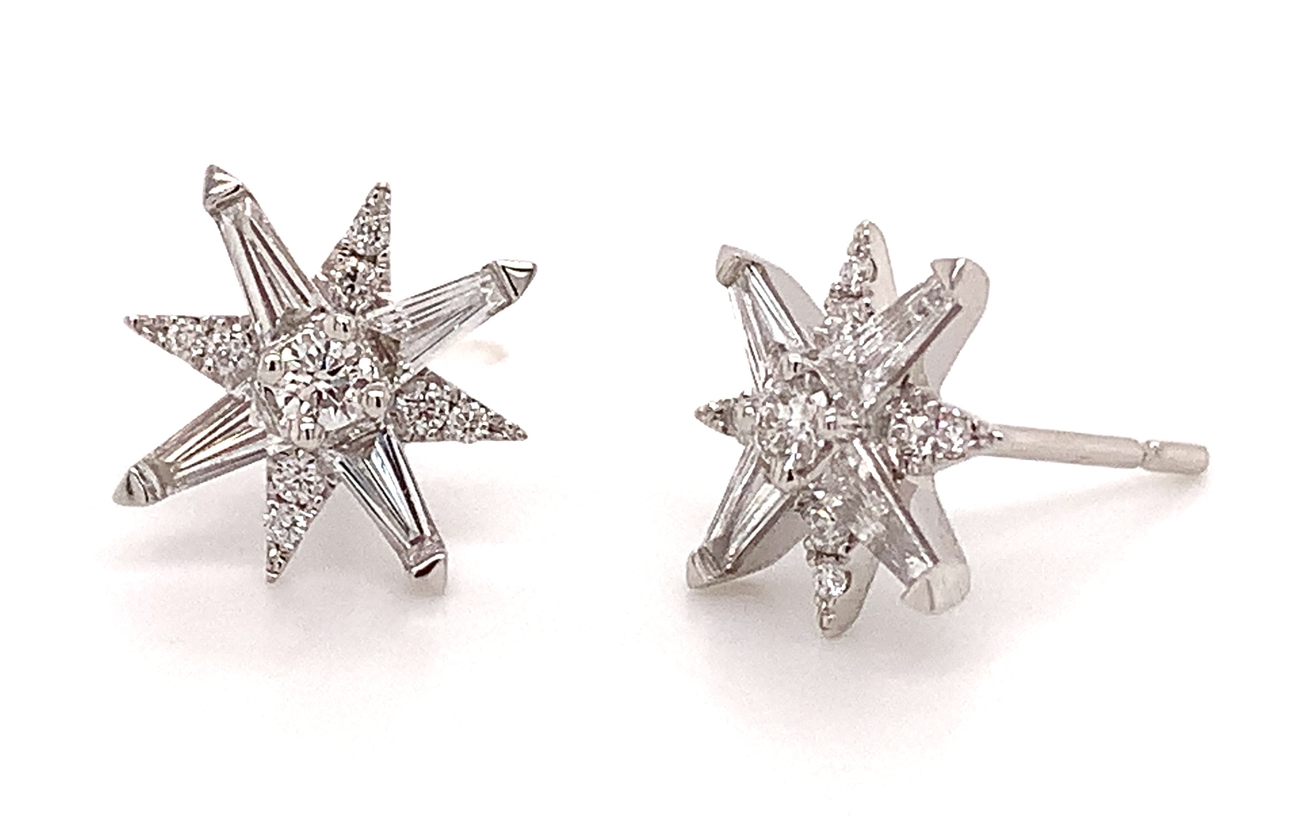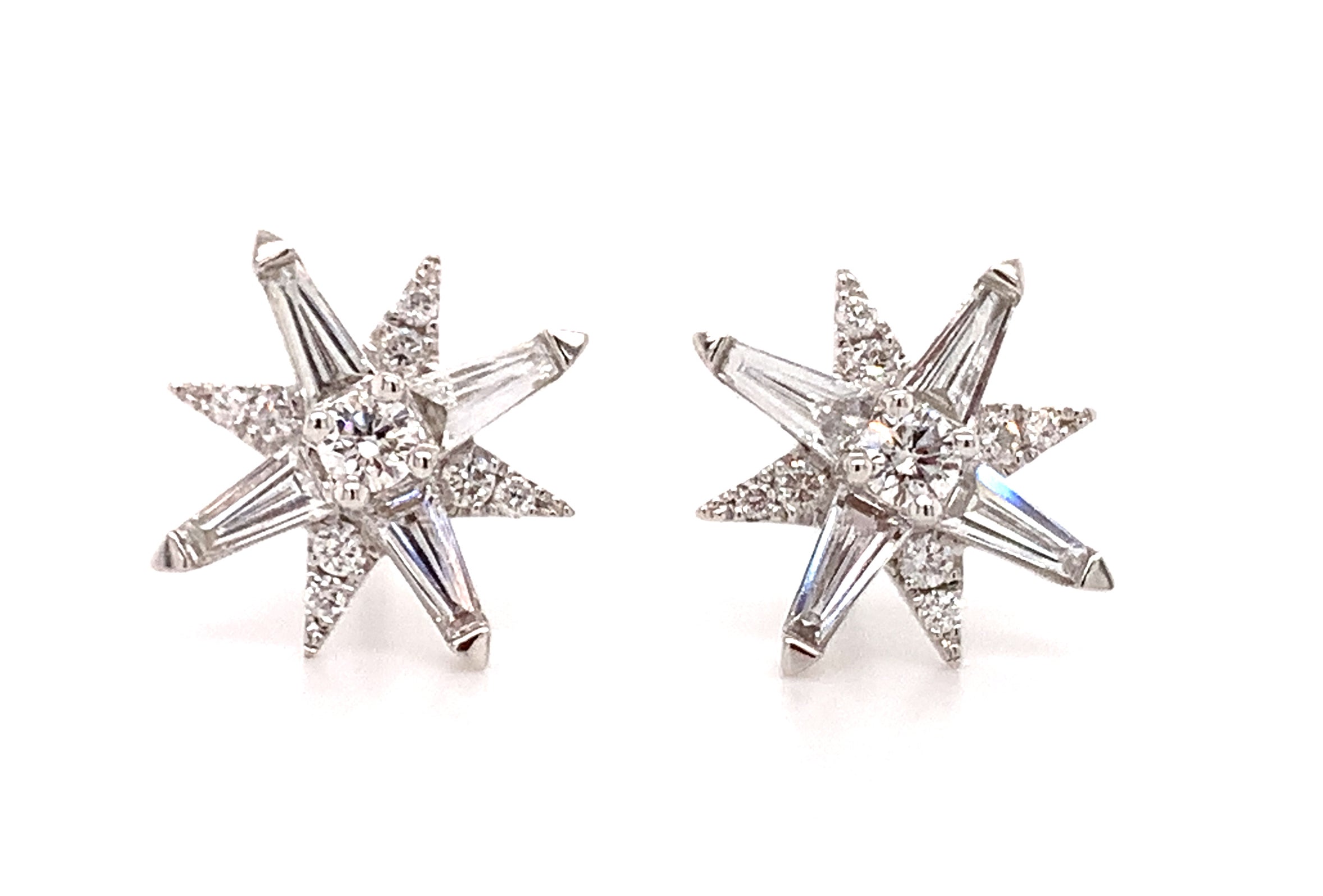 This design is so elegant and flirty she will never take these off her ears. It can become her favorite ones in the jewelry box. Solid trapezoid, round brilliant cuts1.03ctw of diamond flower motif that makes them so unique and beautiful.