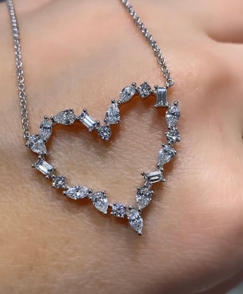 Mix Shape Diamond Open Heart Necklace Perfect For Layering or Solo. There is a reason why its one of our best seller.