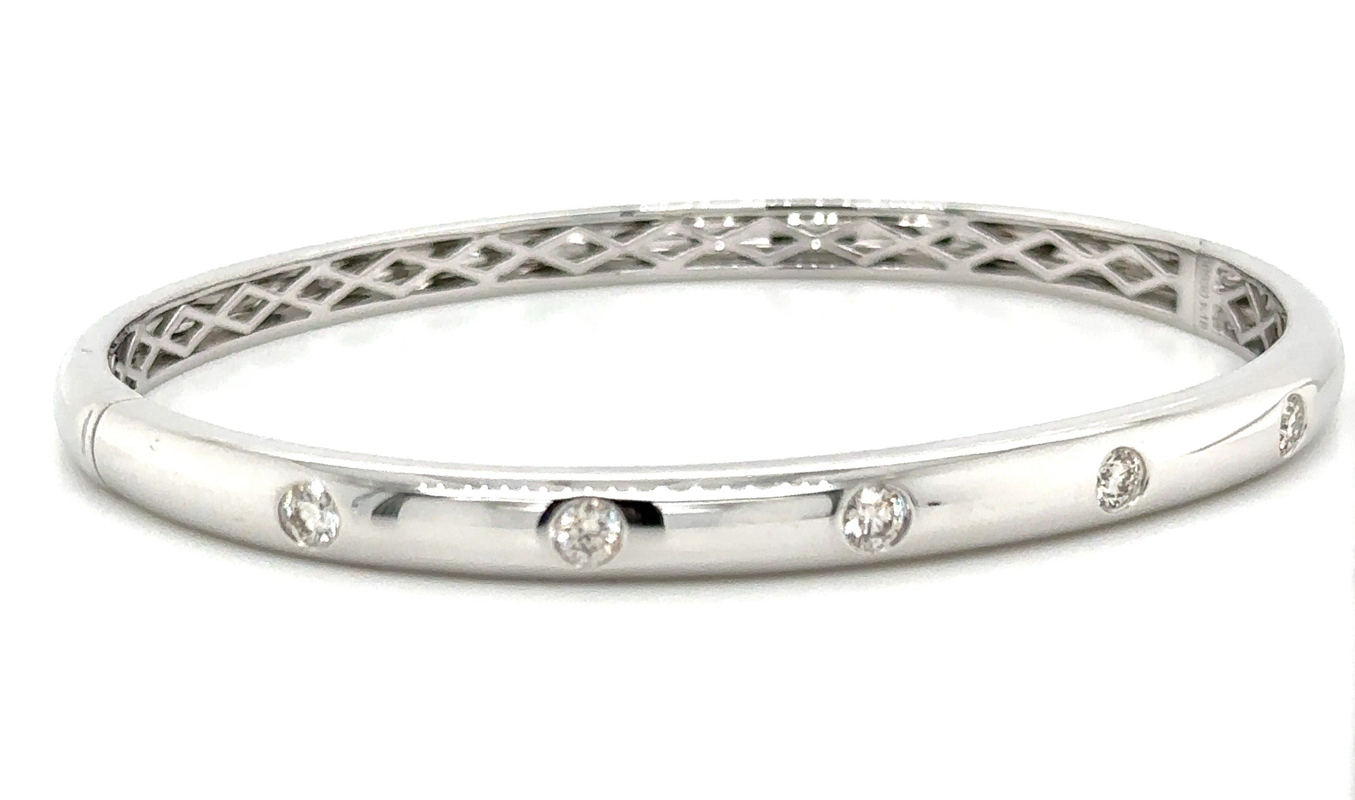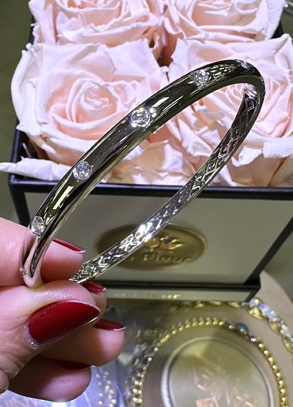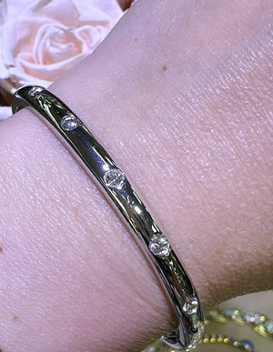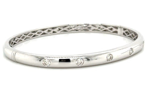 Elevate your style with our 0.53ct tw burnish set diamond gold station bangle bracelet. Sparkling diamonds set in gold create a stunning and timeless piece. Shine with confidence and elegance. Upgrade any outfit with this must-have accessory.