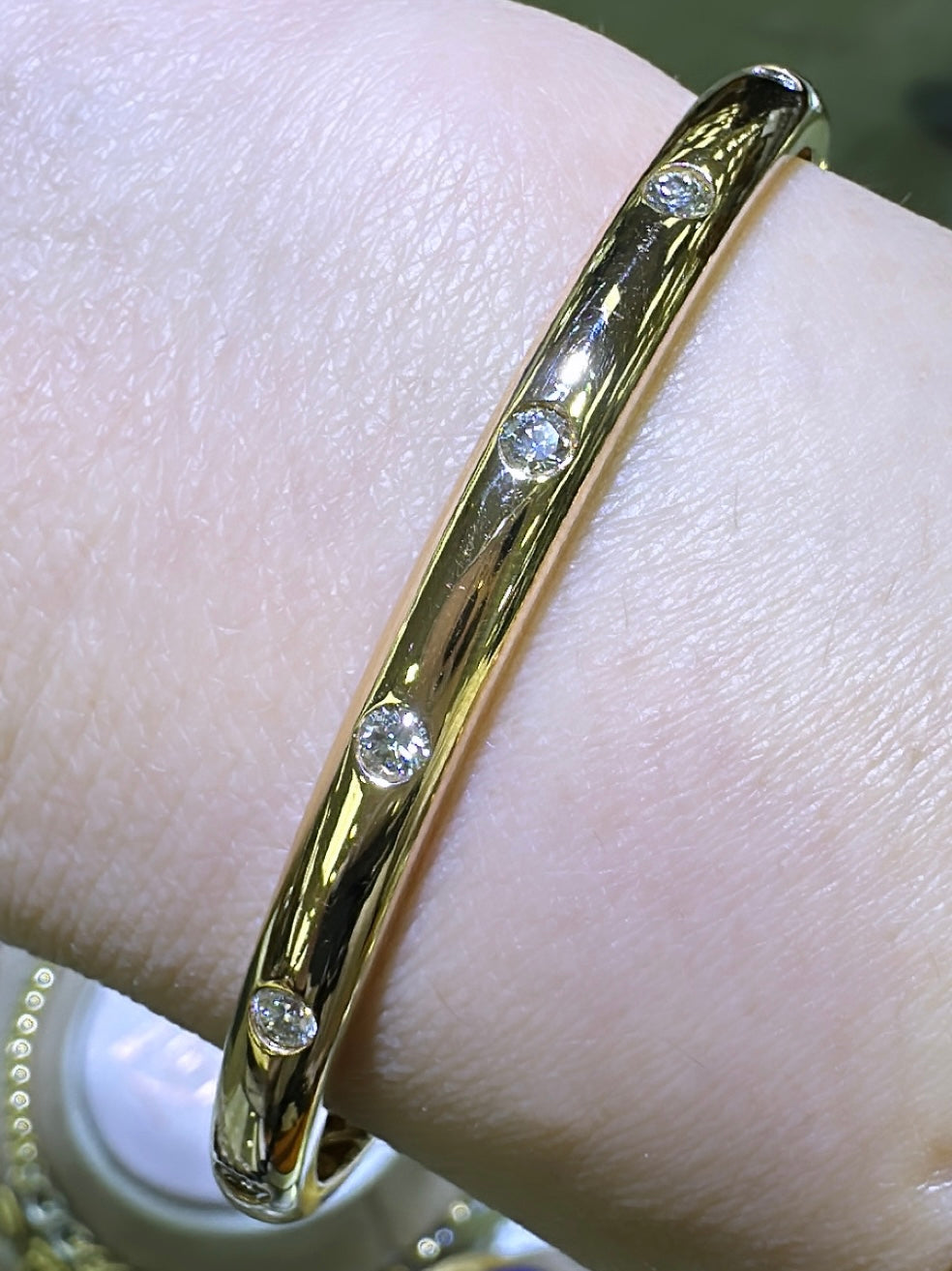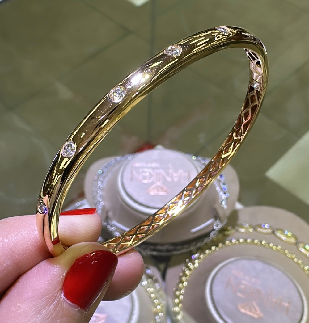 0.54ct tw Burnish Set Diamond Station Bangle Bracelet