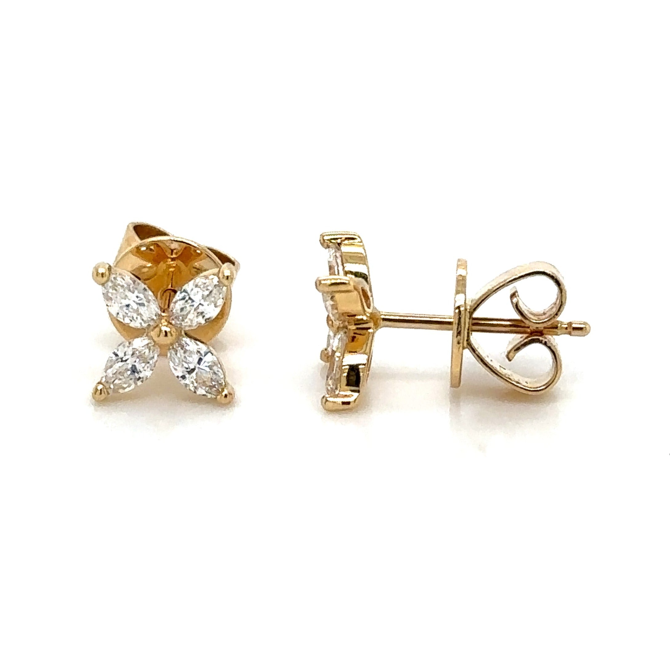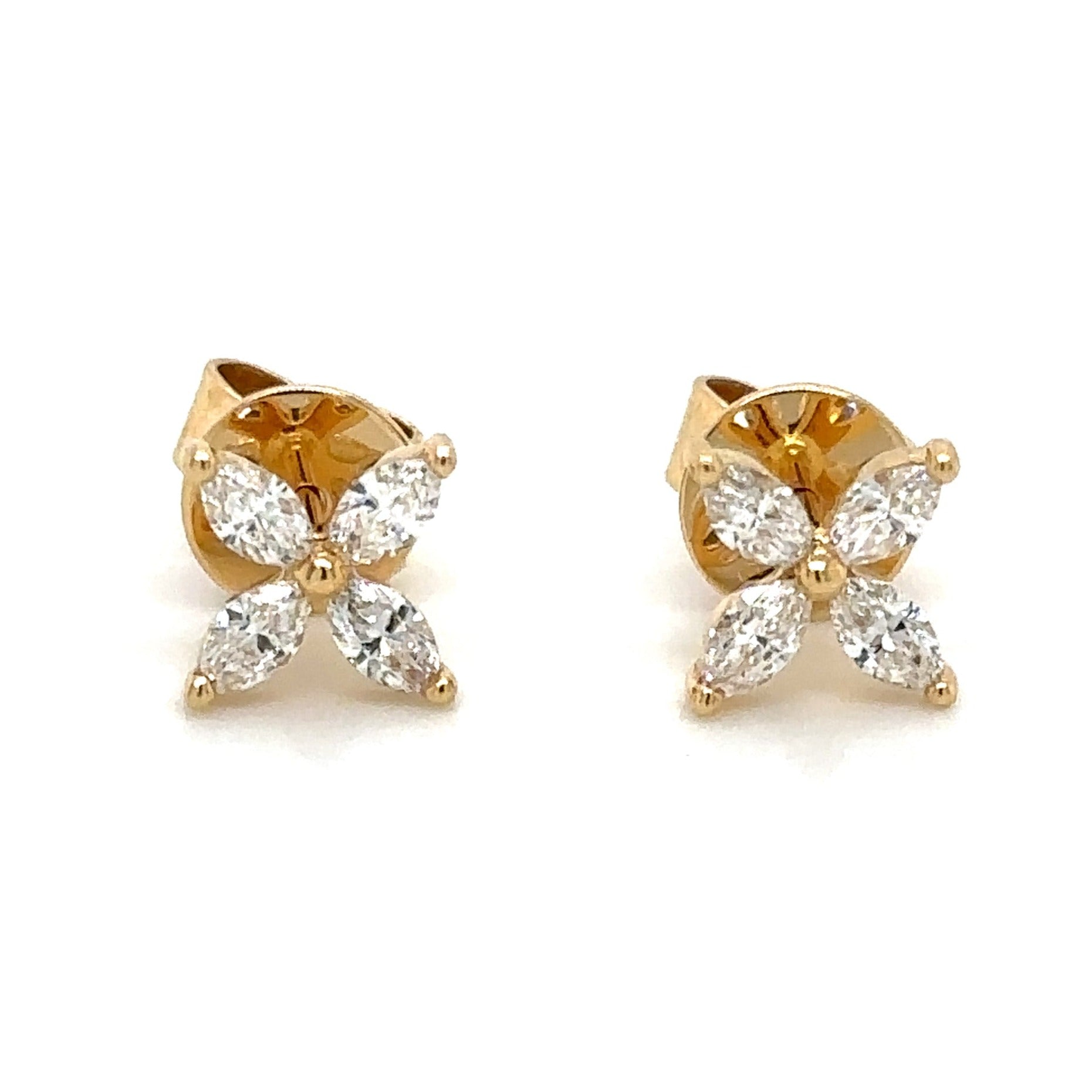 Elevate your everyday style with our stunning 0.54ct tw ladies diamond flower shape marquise stud earrings. Sparkling marquise diamonds in a delicate flower shape make these earrings a must-have for any jewelry collection. Enjoy effortless elegance and timeless sophistication with every wear.