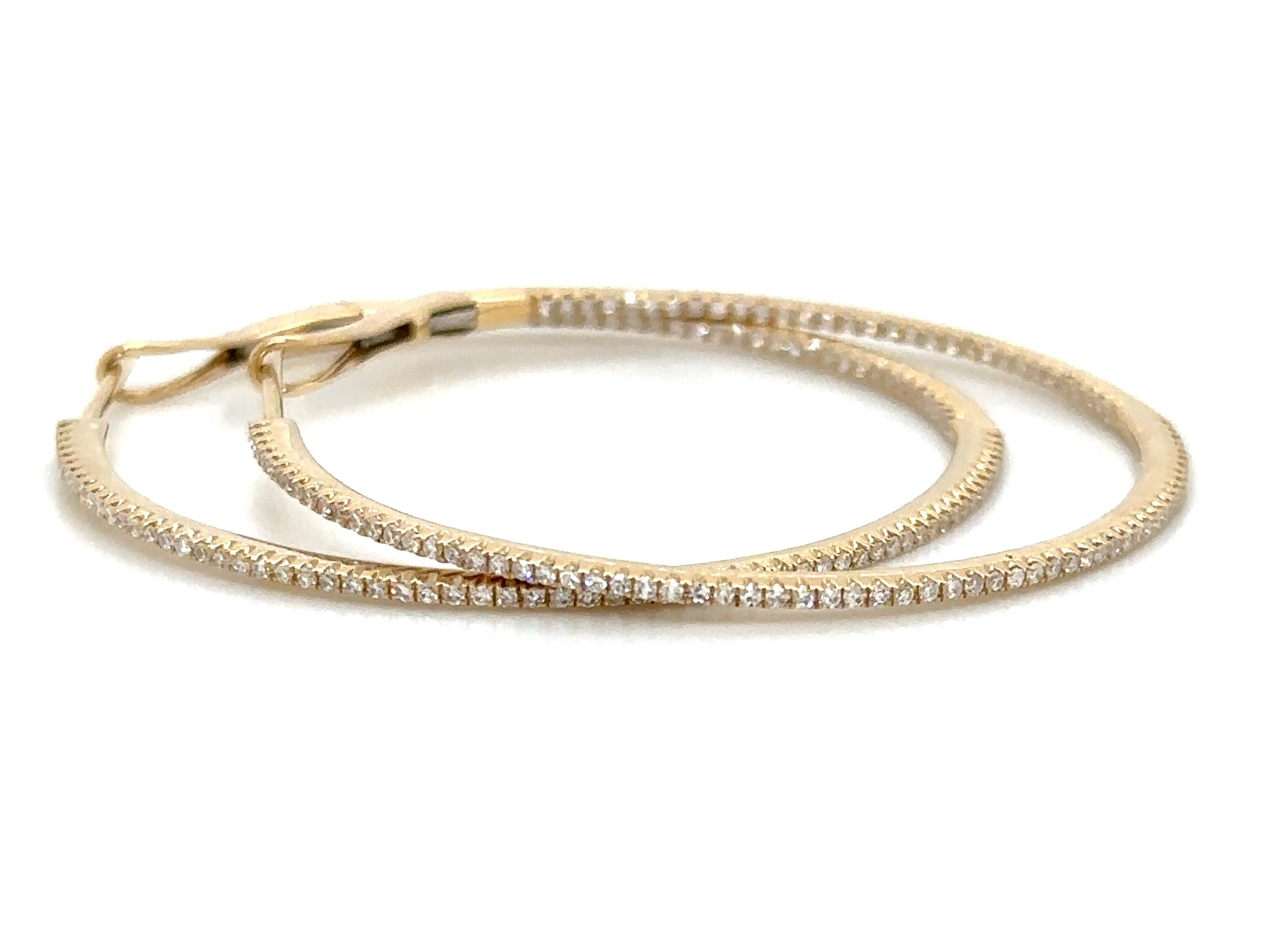 Be the envy of your peers with these gorgeous 0.55ct tw ladies inside out diamond round hoop earrings. These dazzling accessory pieces feature round diamonds that are set on the inside and outside of the hoop for extra sparkle. An elegant and timeless keepsake that is sure to dazzle. Get ready to shine!