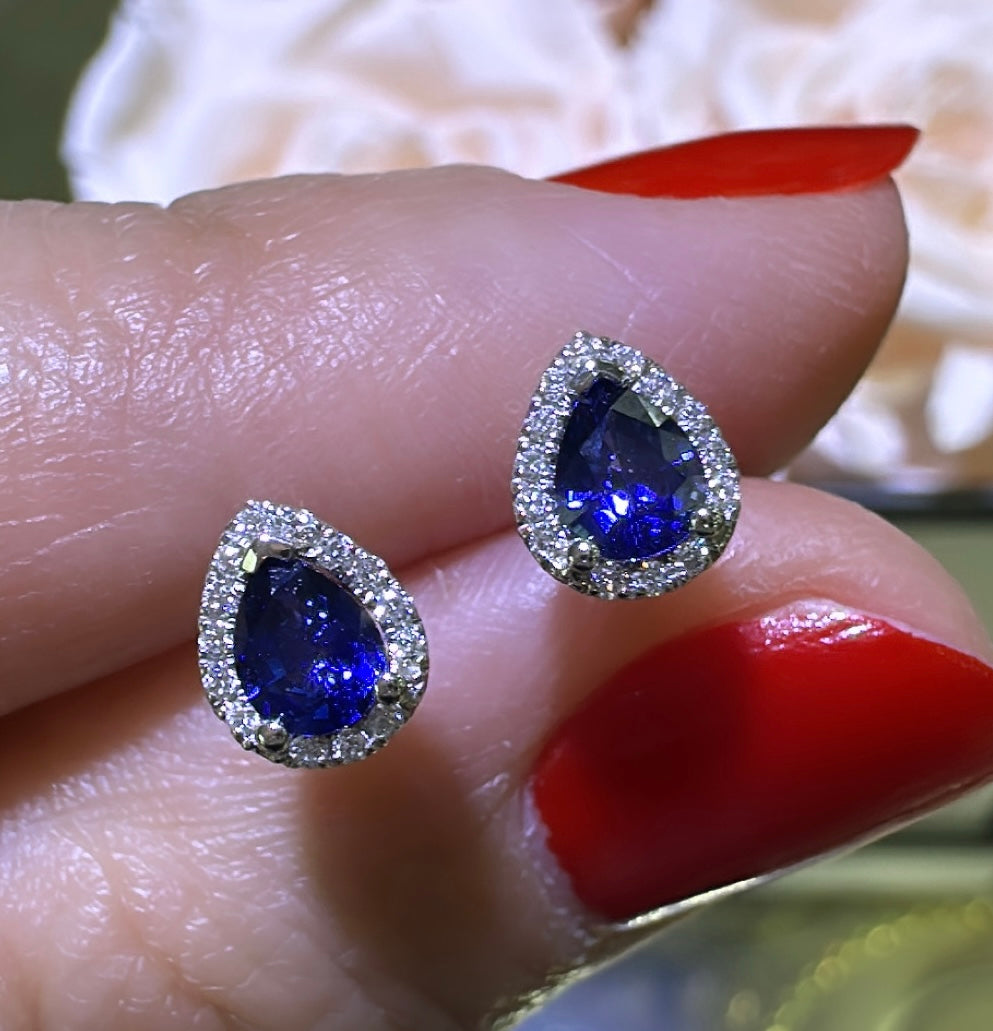 Sparkle and shine with these stunning 0.58ct tw pear shape blue sapphire diamond stud earrings. The elegant pear shape design, combined with the brilliance of blue sapphires and diamonds, will add a touch of luxury and sophistication to any outfit.