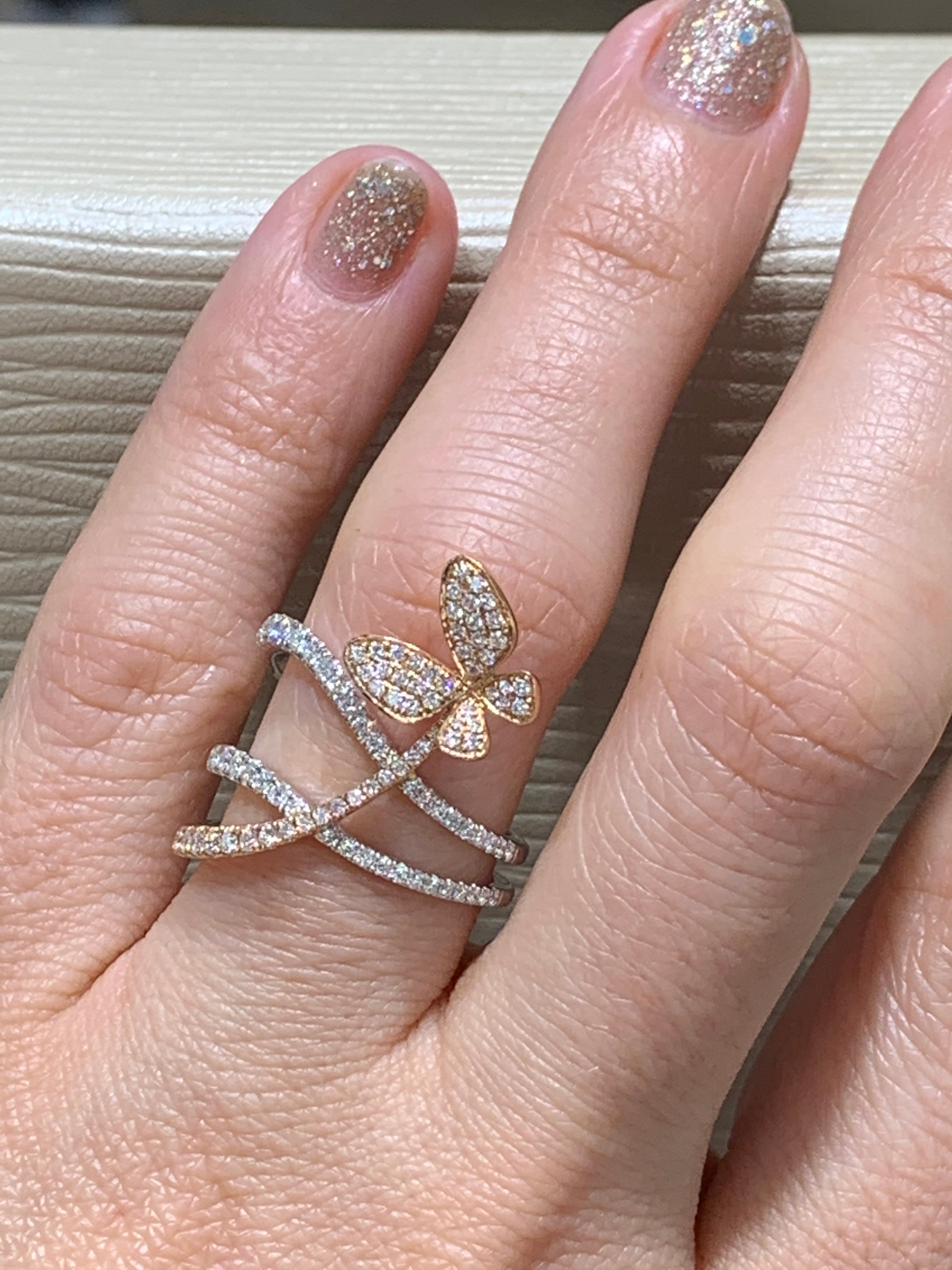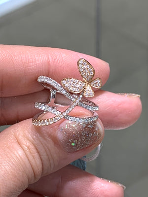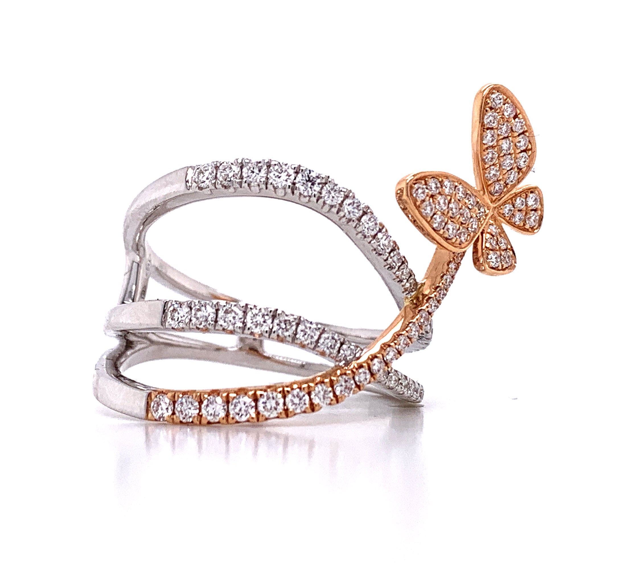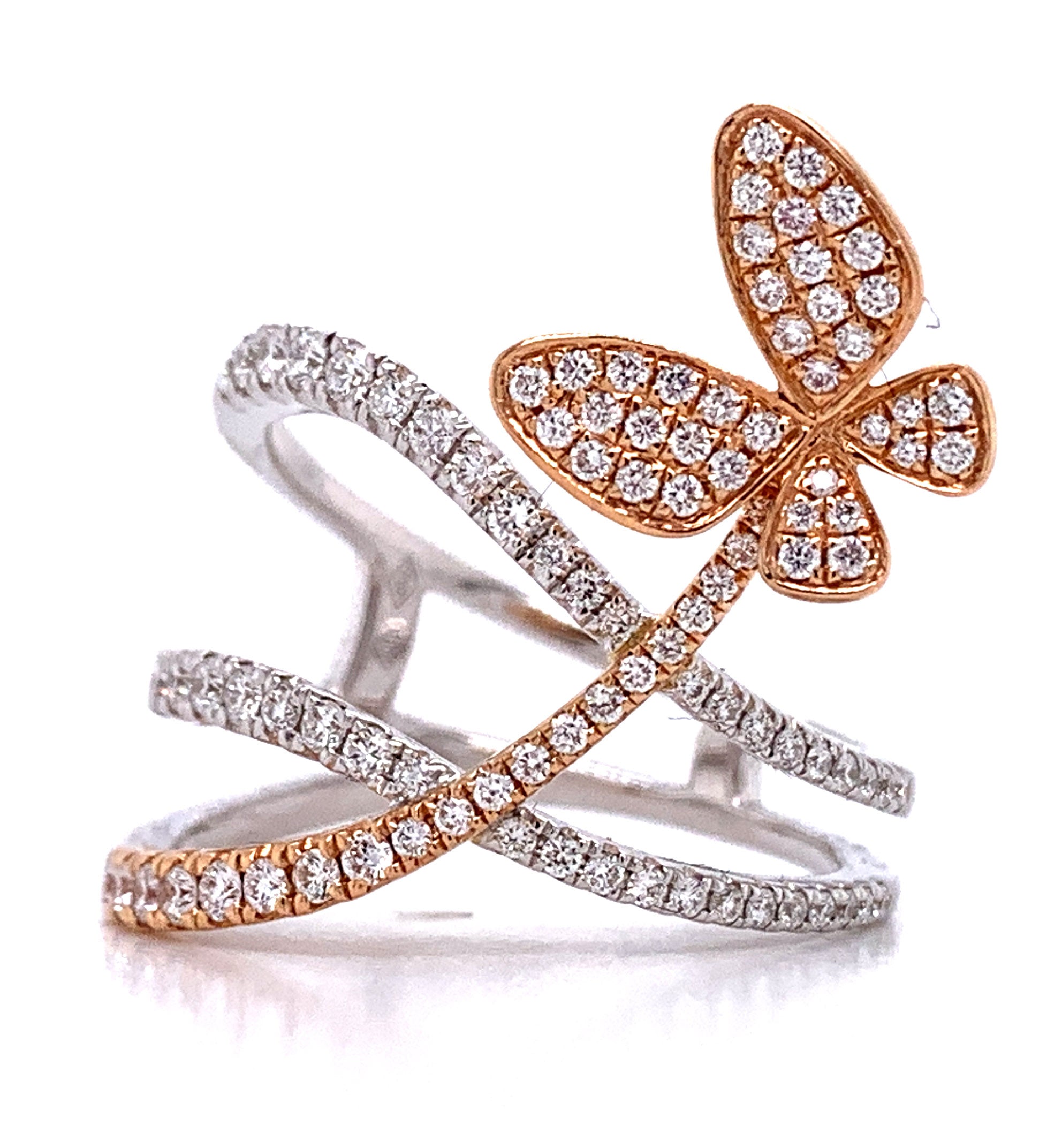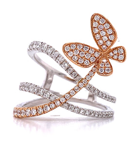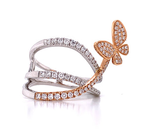 0.61CTW Two tone Diamond Butterfly Ring - HANIKEN JEWELERS NEW-YORK
