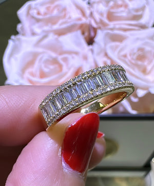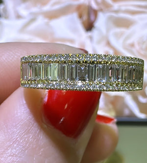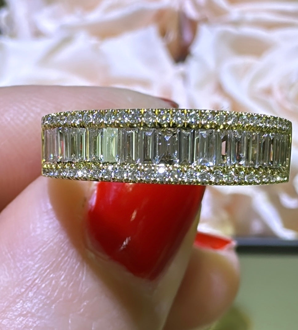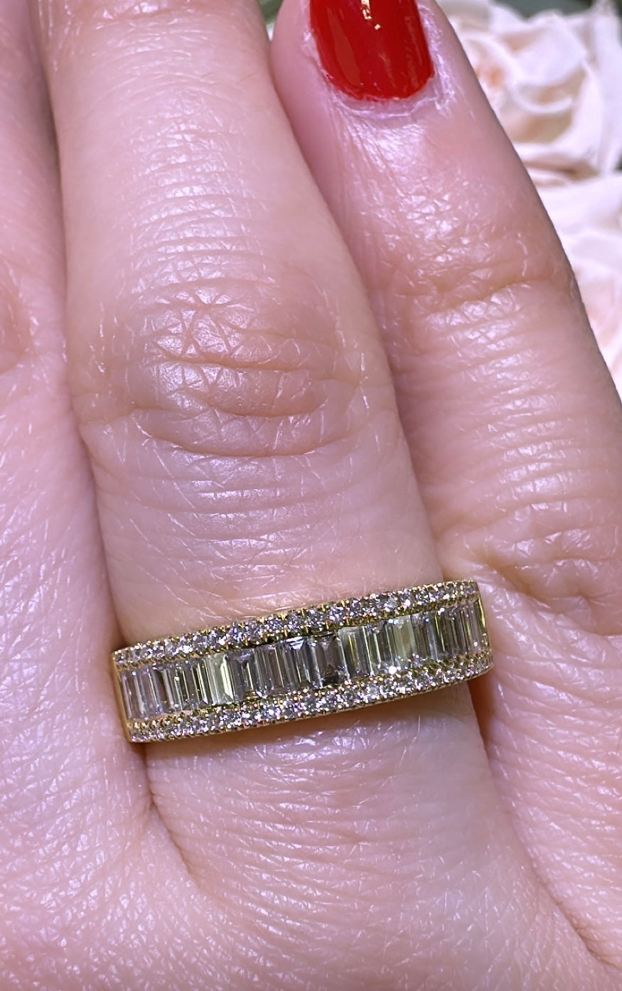 Elevate your style with our 0.64ct t.w. Eternity baguette diamond band ring. The perfect union of elegance and sparkle, this ring features an array of baguette diamonds that wrap around your finger endlessly. Make a statement with every movement.