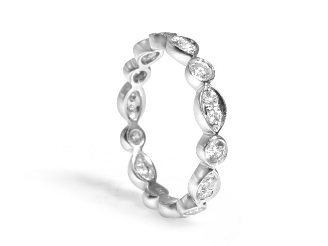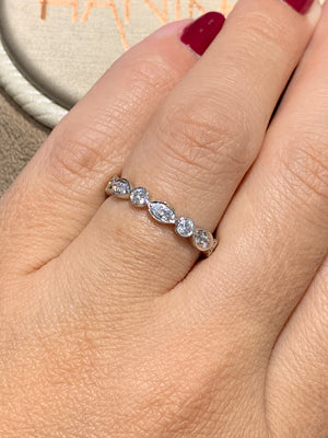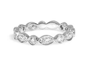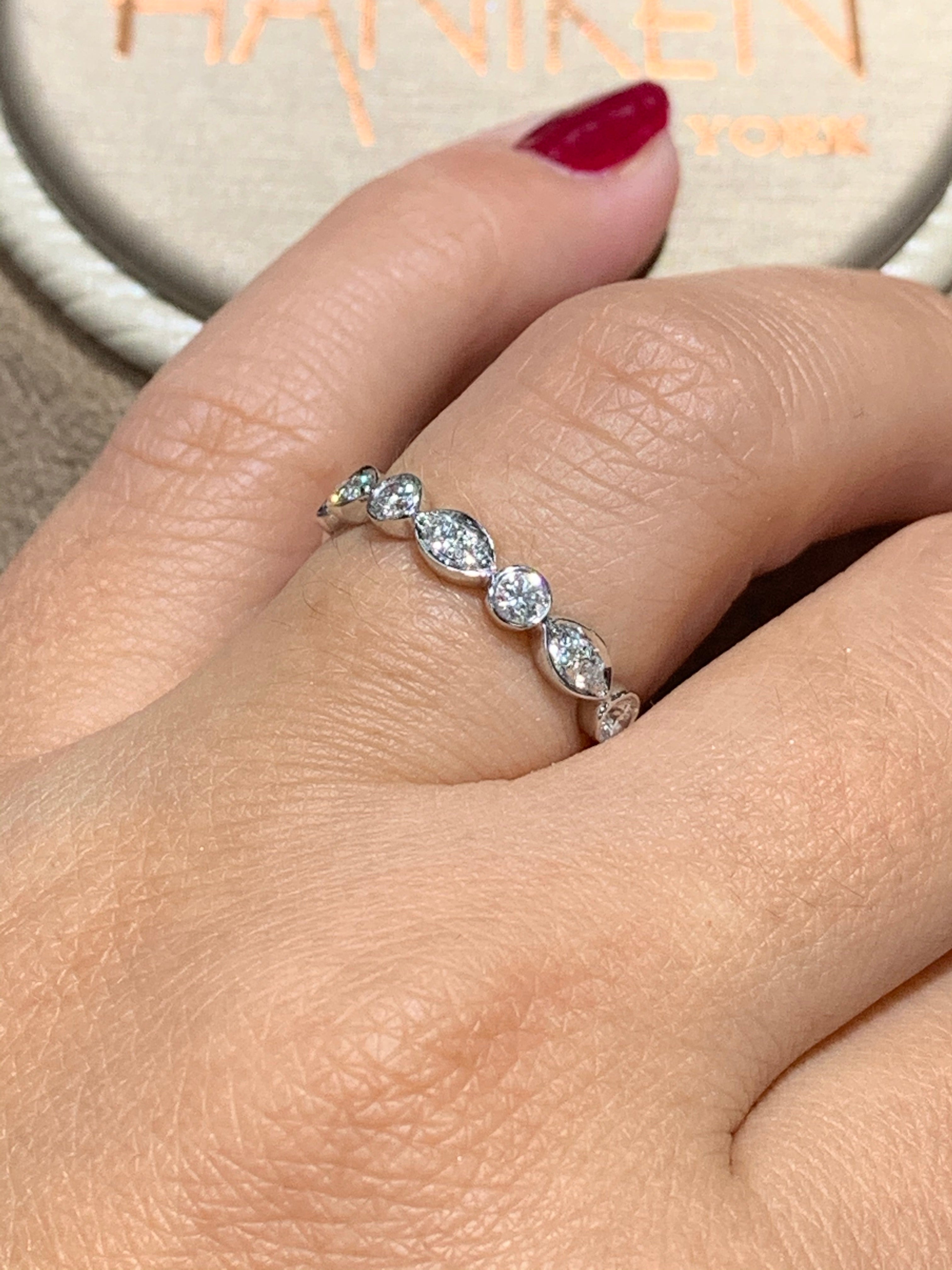 You don't have to break your bank to stay elegant and stylish. This 18k diamond eternity band with 0.69ctw round brilliant diamonds is one of our all-time faves that has been around for years. You will catch yourself looking at it all the time! Metal: 18kt White Gold Diamond Weight: 21 Round Brilliant Cuts 0.69ct t.w. Band Width: 3mm Size: US 6