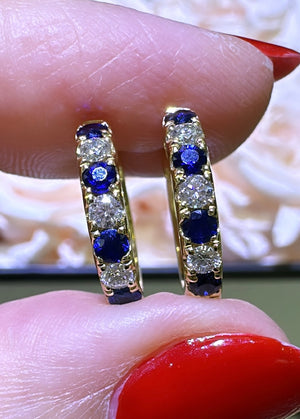 0.72carat Blue Sapphire and Diamond Huggie Hoop Earrings