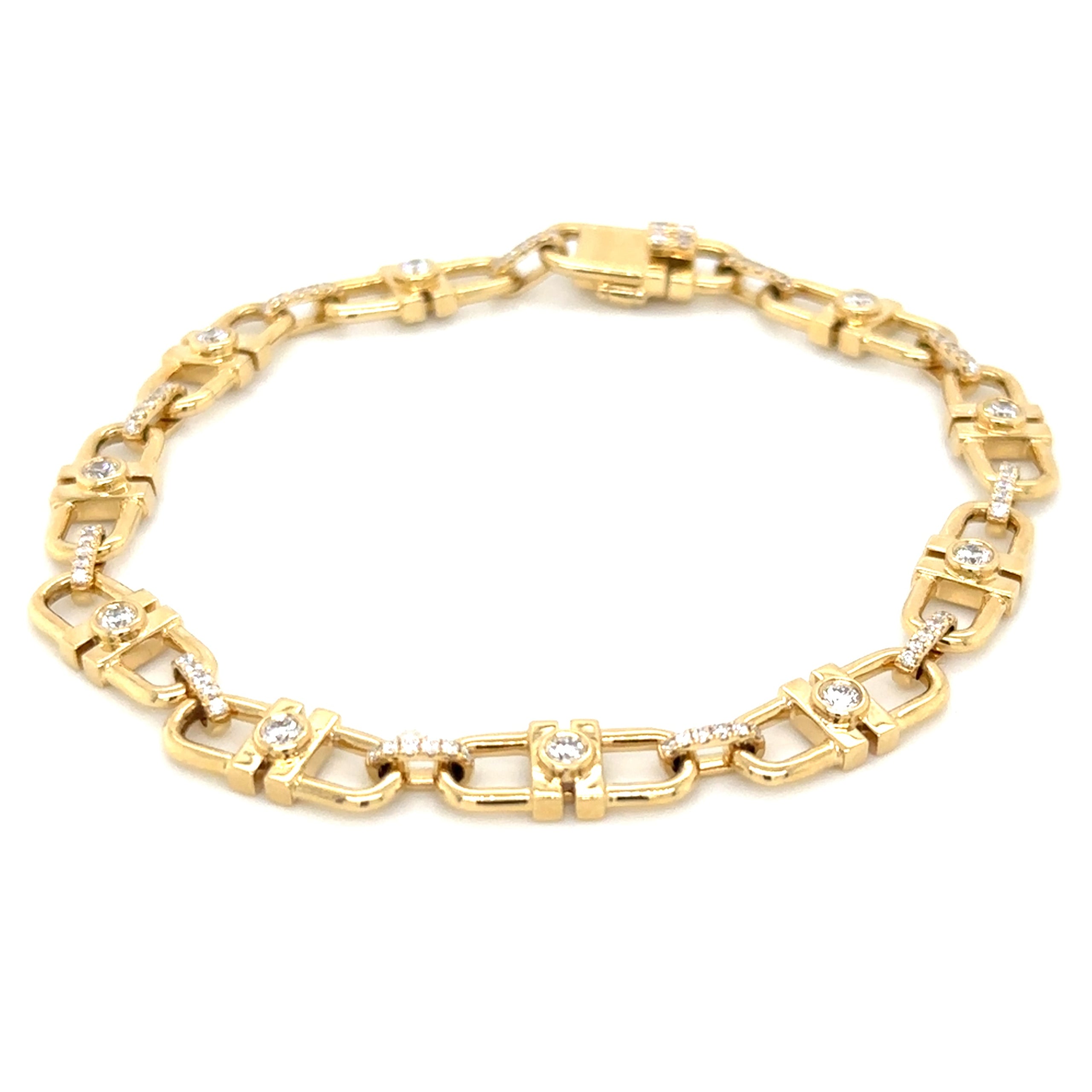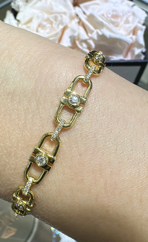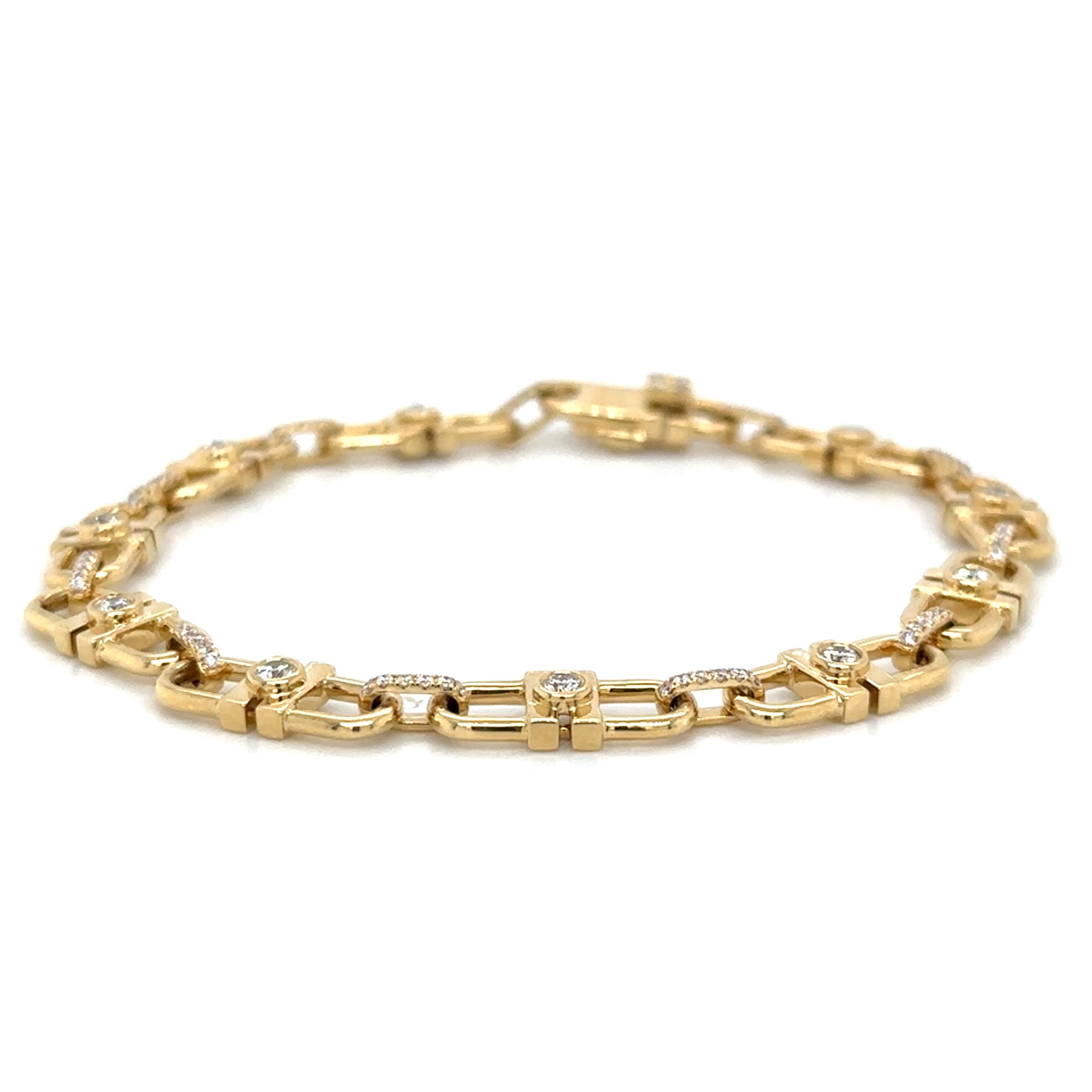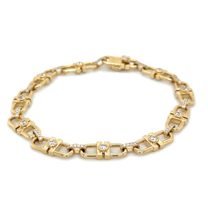 Dress up any outfit with our stunning 0.73ct t.w. link gold and diamond bracelet! Featuring a delicate link design, this bracelet adds a touch of elegance and sparkle to your look. Made with high-quality diamonds and gold, it's the perfect statement piece for any occasion.