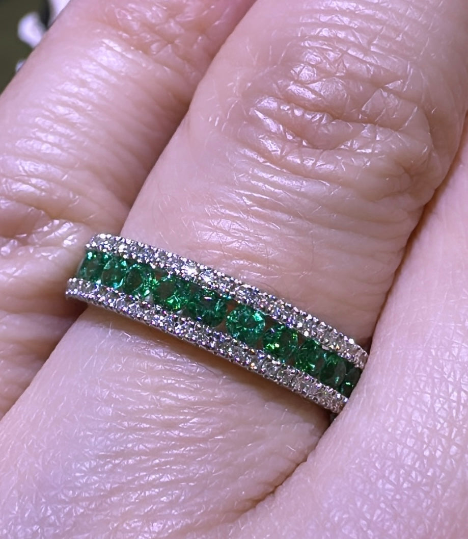Gem-Stone Details: 14 Emerald 0.54ct tw / 56 Round Diamonds 0.20ct tw