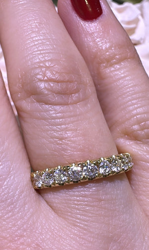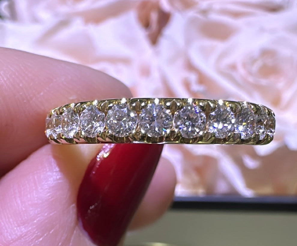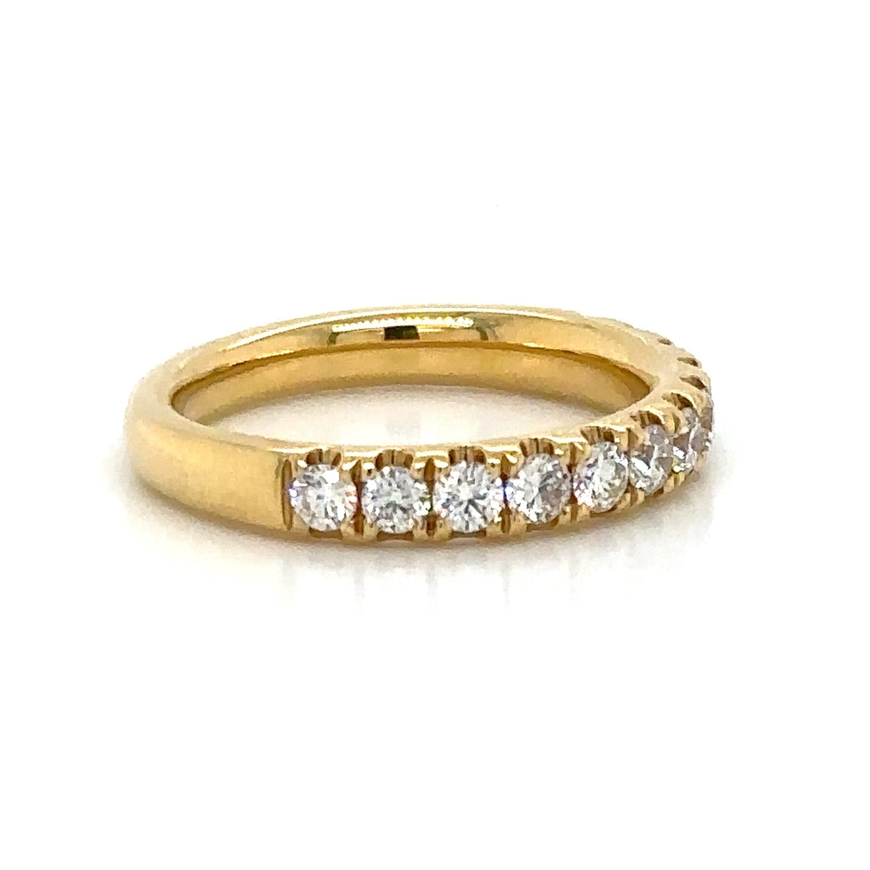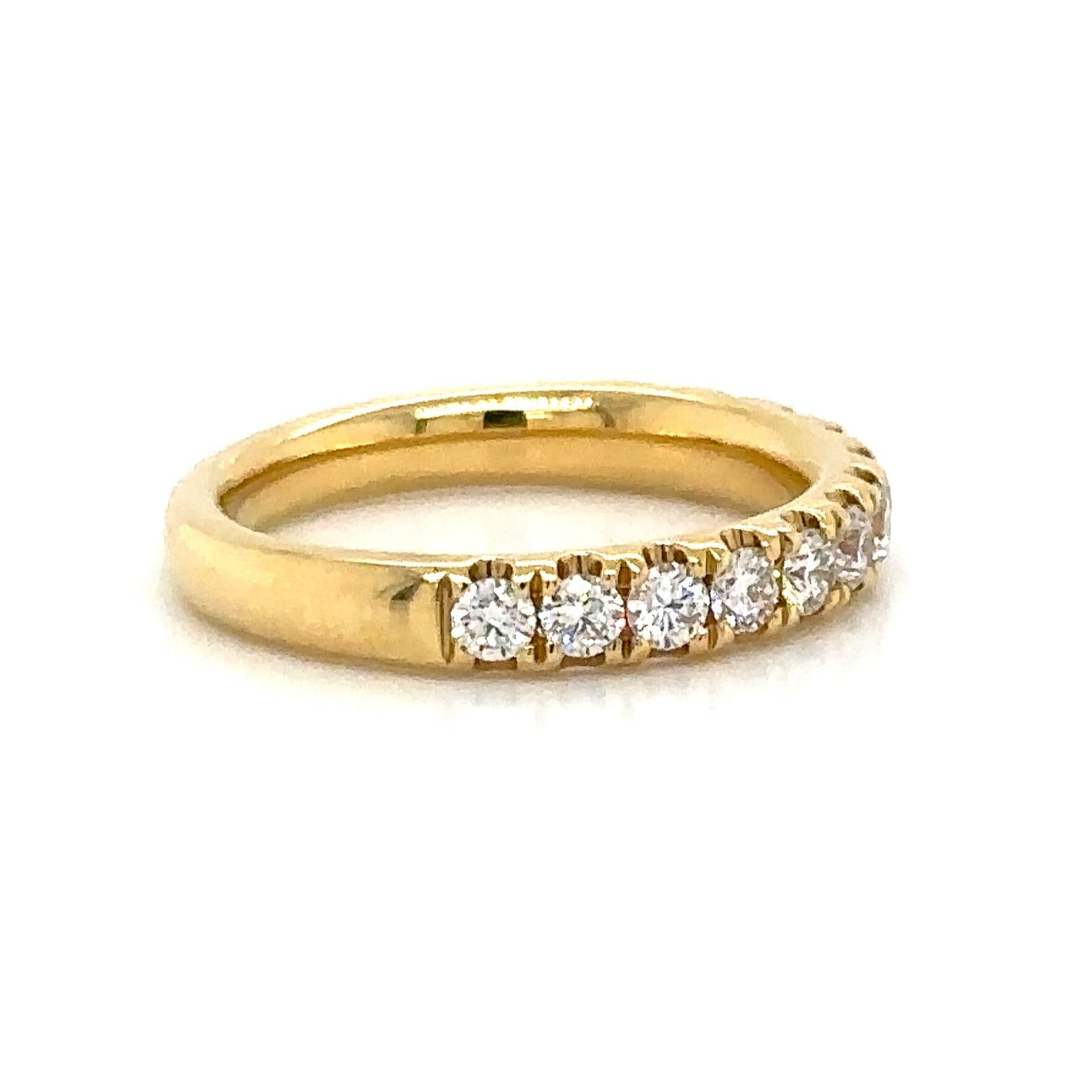 Experience the timeless elegance and eternal love with our 0.75ct tw diamond half eternity band ring. Featuring a stunning half eternity design, this ring is adorned with 0.75 carats of sparkling diamonds, adding an extra touch of glamour to any outfit. Perfect for celebrating special moments or as a meaningful gift for your loved one.
