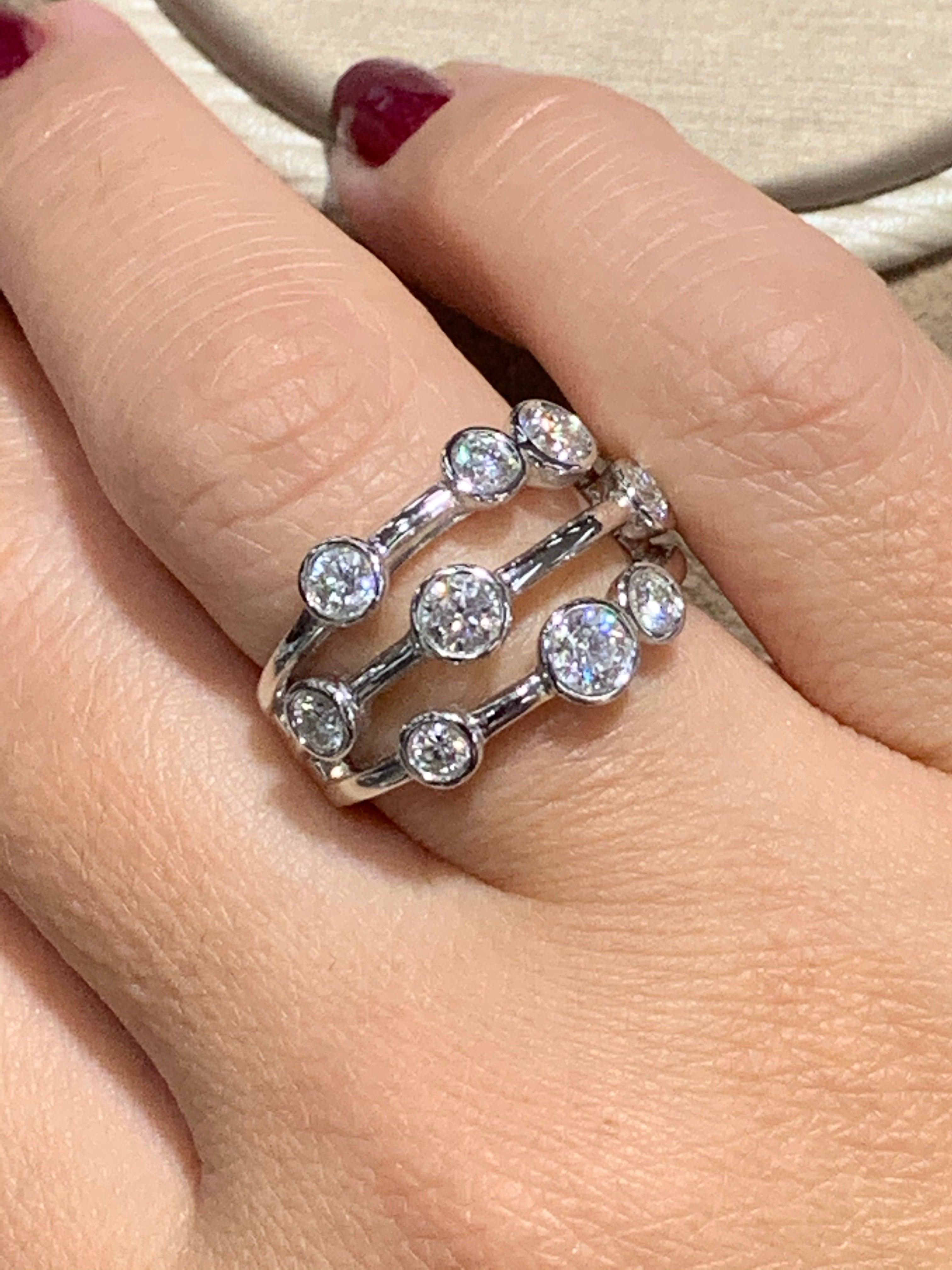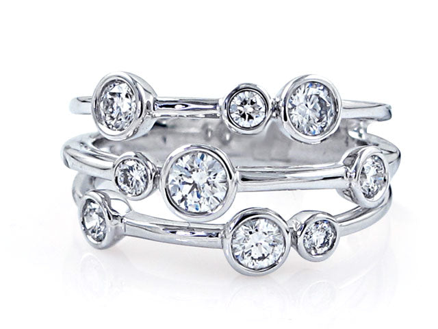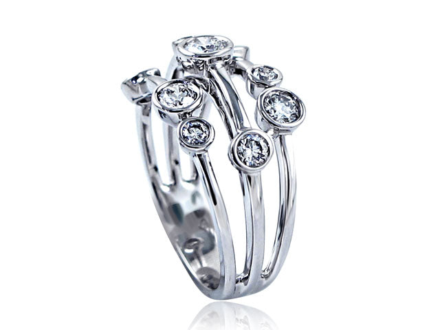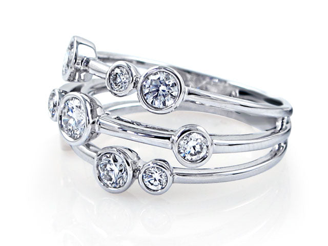 This 0.79ct tw Bezel Set Multi Row Diamond Fashion Ring adds a timelessly elegant touch to any look. Its intricate design features a multi-row of luminous diamonds, expertly set into a durable bezel setting. Its classic styling makes this ring the ideal accessory to complete your sophisticated formalwear, or to elevate a casual ensemble. Let the beauty of the diamonds captivate you and all those around you with this exquisite piece.