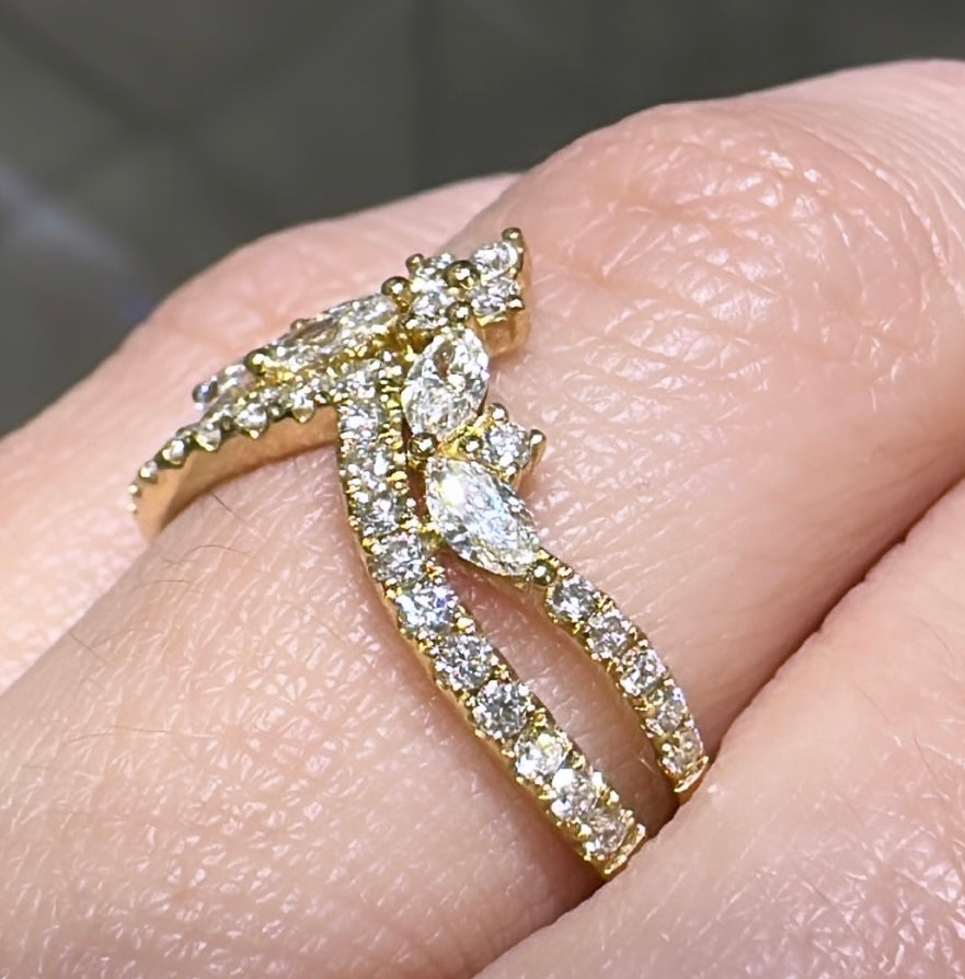 0.79ct tw Ladies Curved Diamond V- Shape Crown Ring