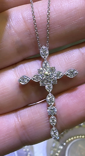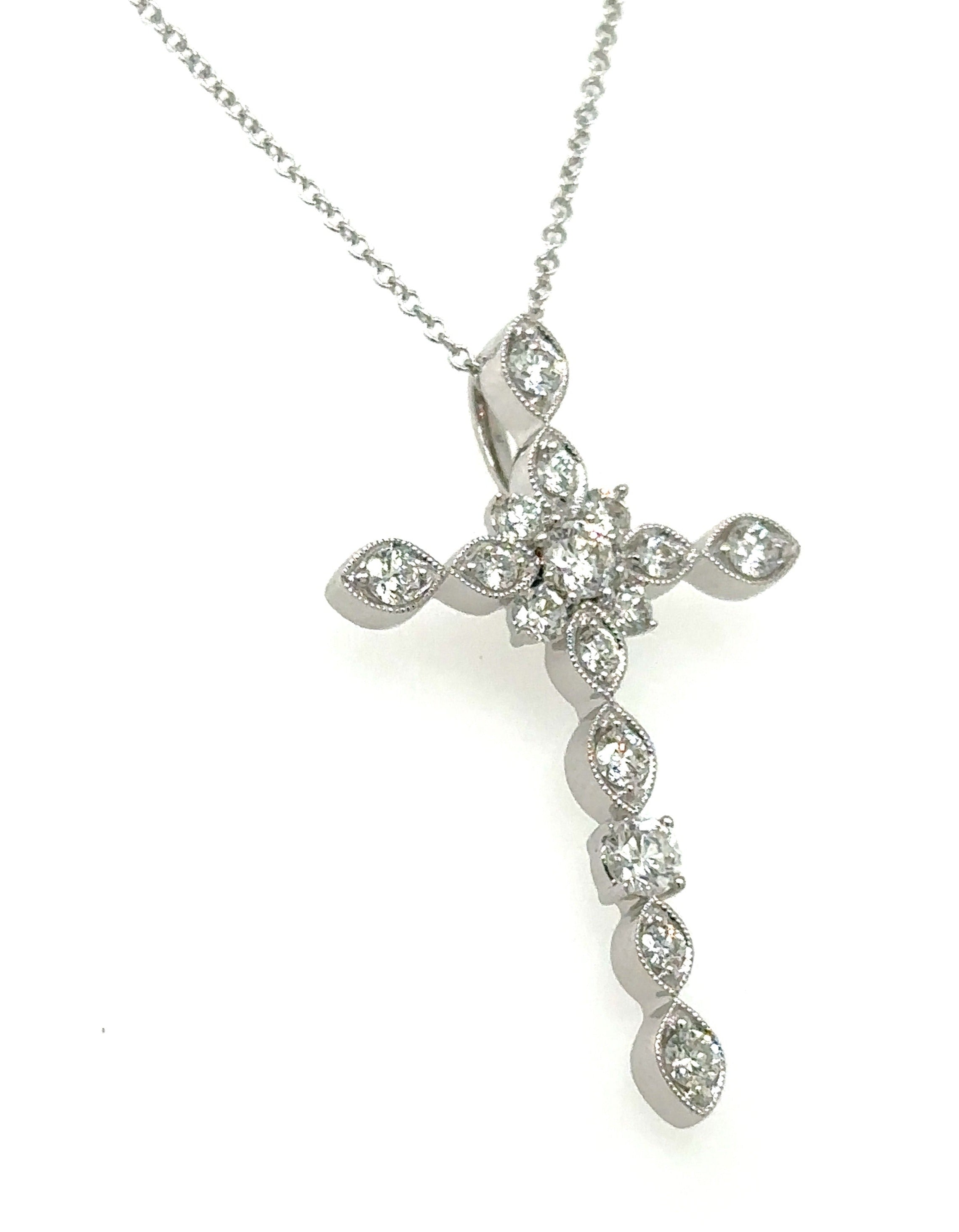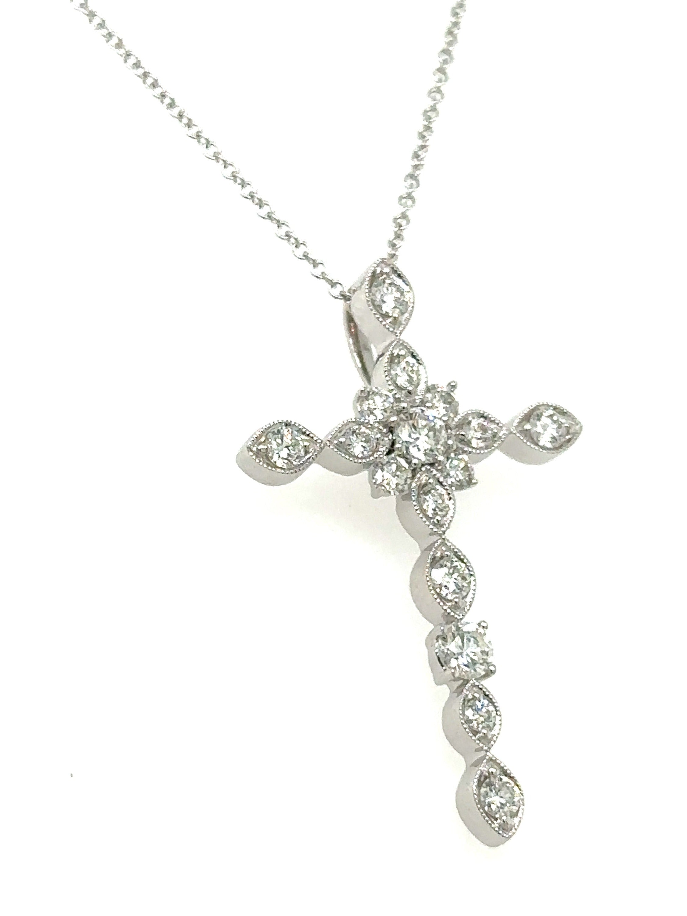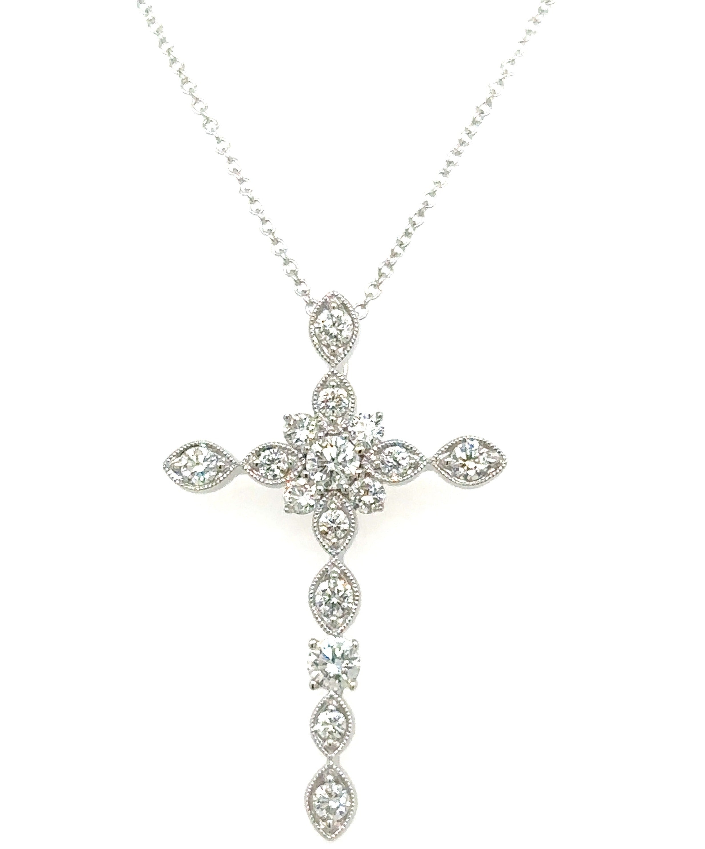 Let your beauty and faith shine brightly with this stunning 0.80ct tw fancy diamond cross with milgrain edging pendant necklace. From the glimmering diamonds to the eye-catching milgrain edging, this necklace will be sure to turn heads with its captivating magnificence!
