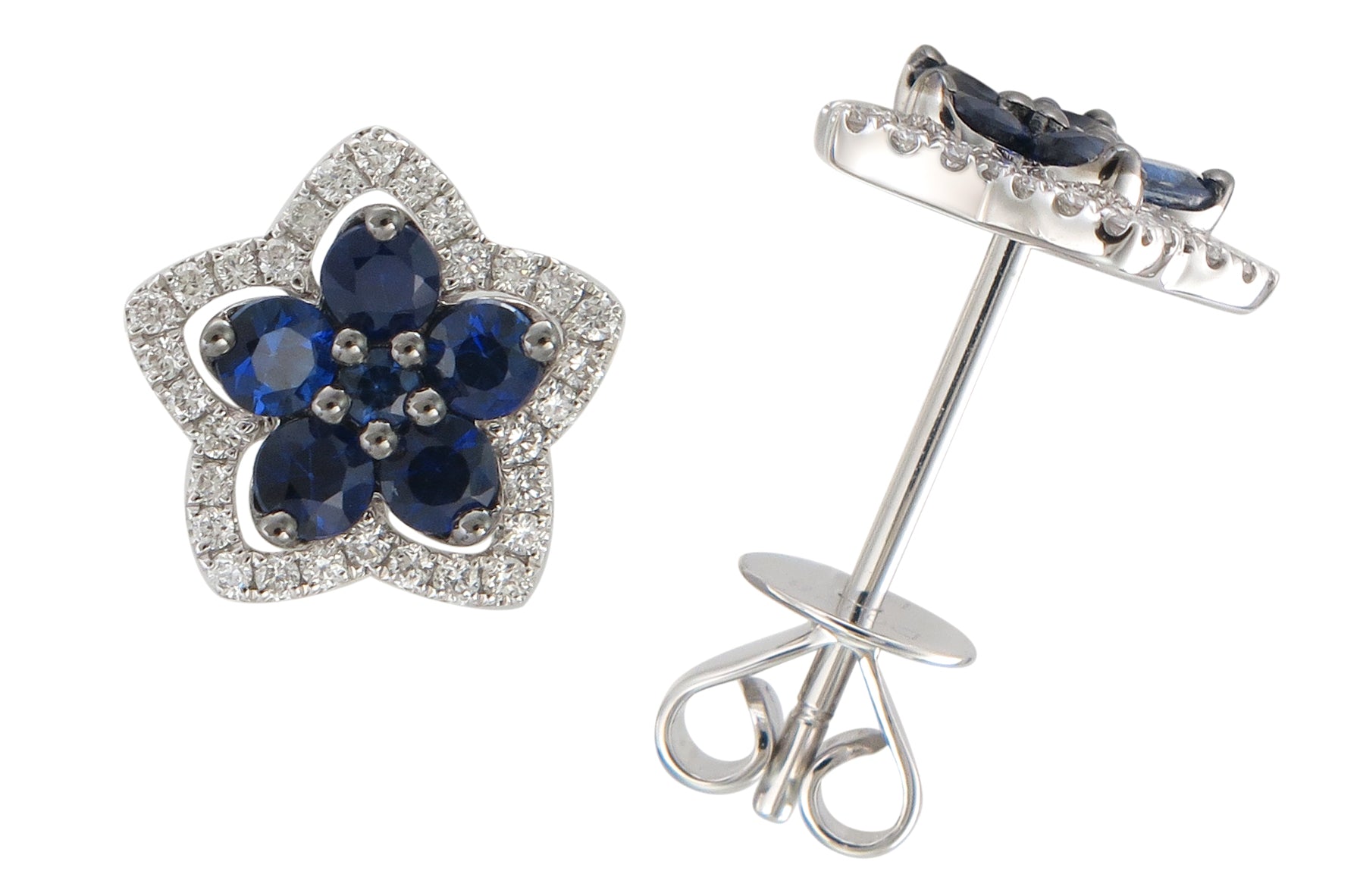 Diamond Shapes: 60 Round Diamonds / 12 Blue Sapphire 0.71ct tw