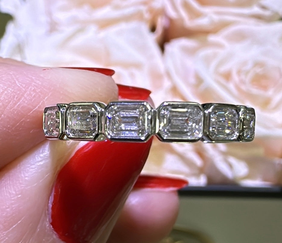 0.85ct tw Emerald Cut Diamond Bezel Set Half Eternity Band