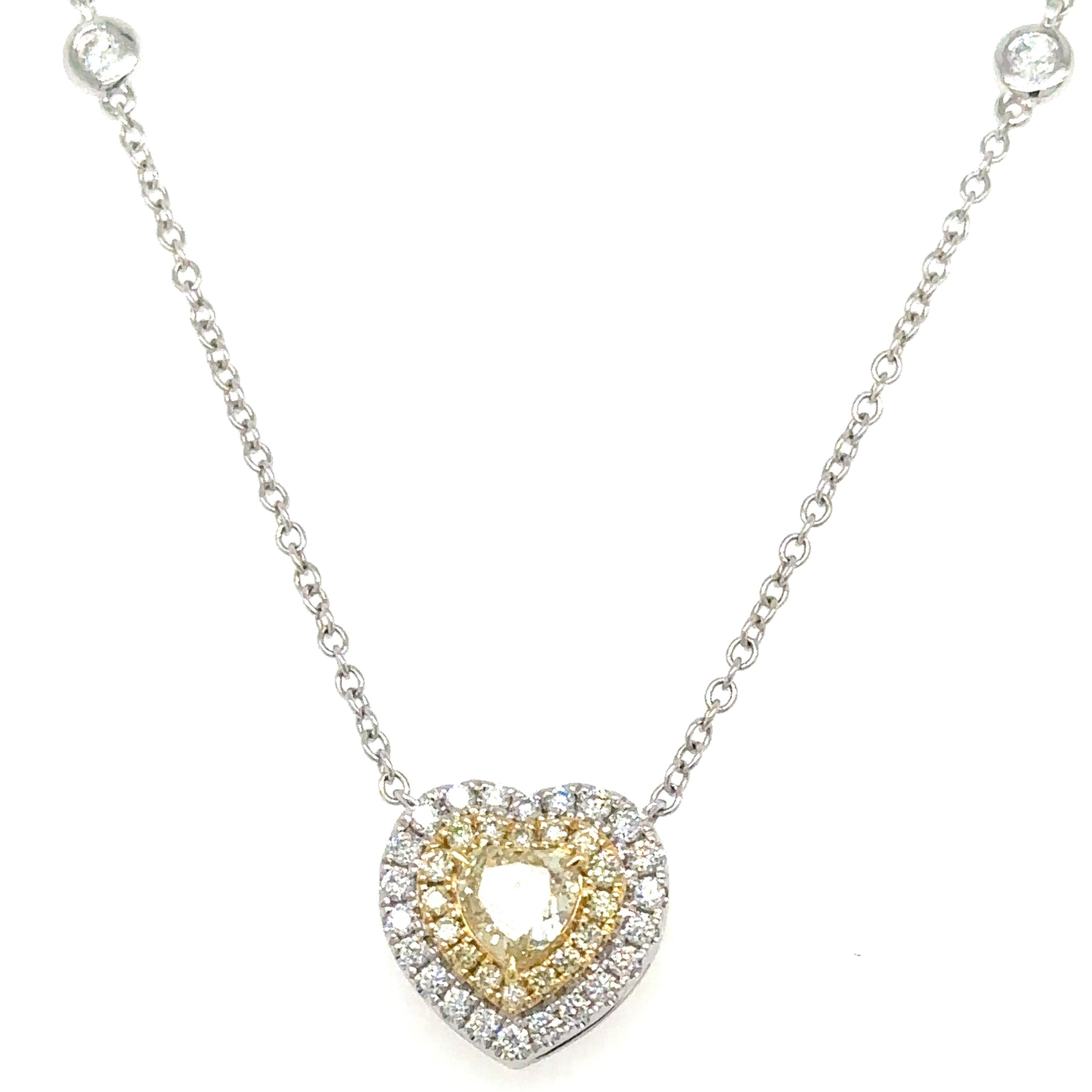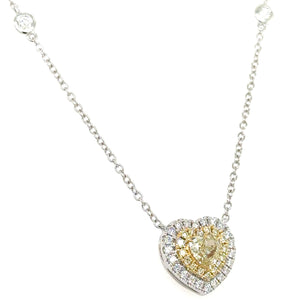 0.90ct tw Canary Fancy Yellow & White Diamond Heart Pendant Necklace