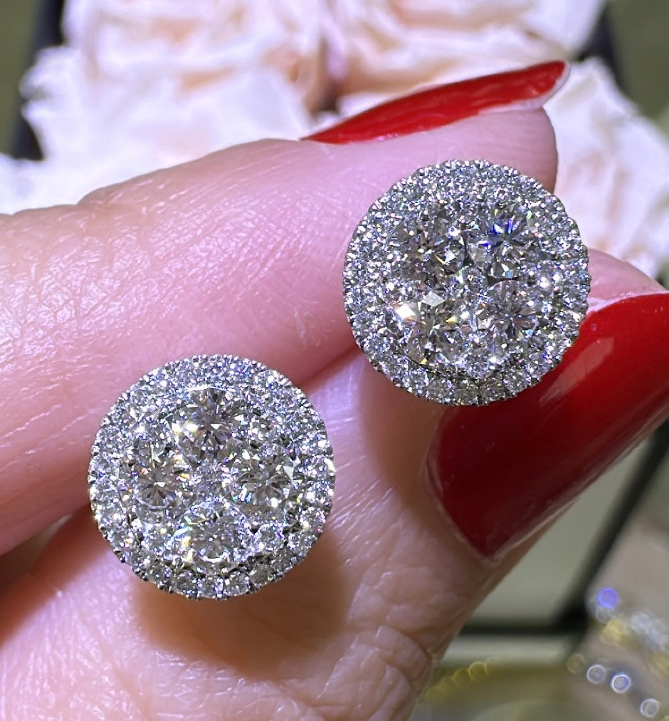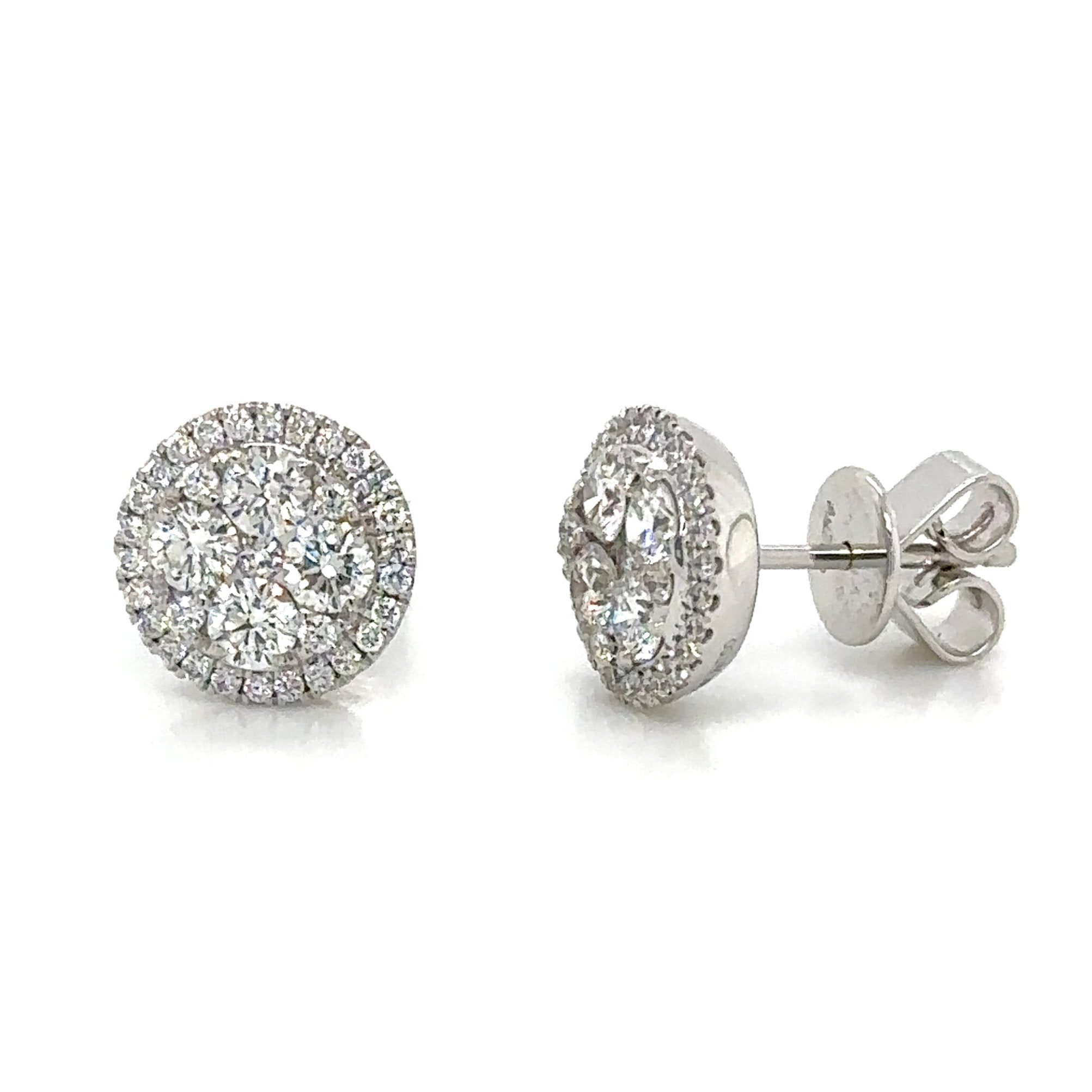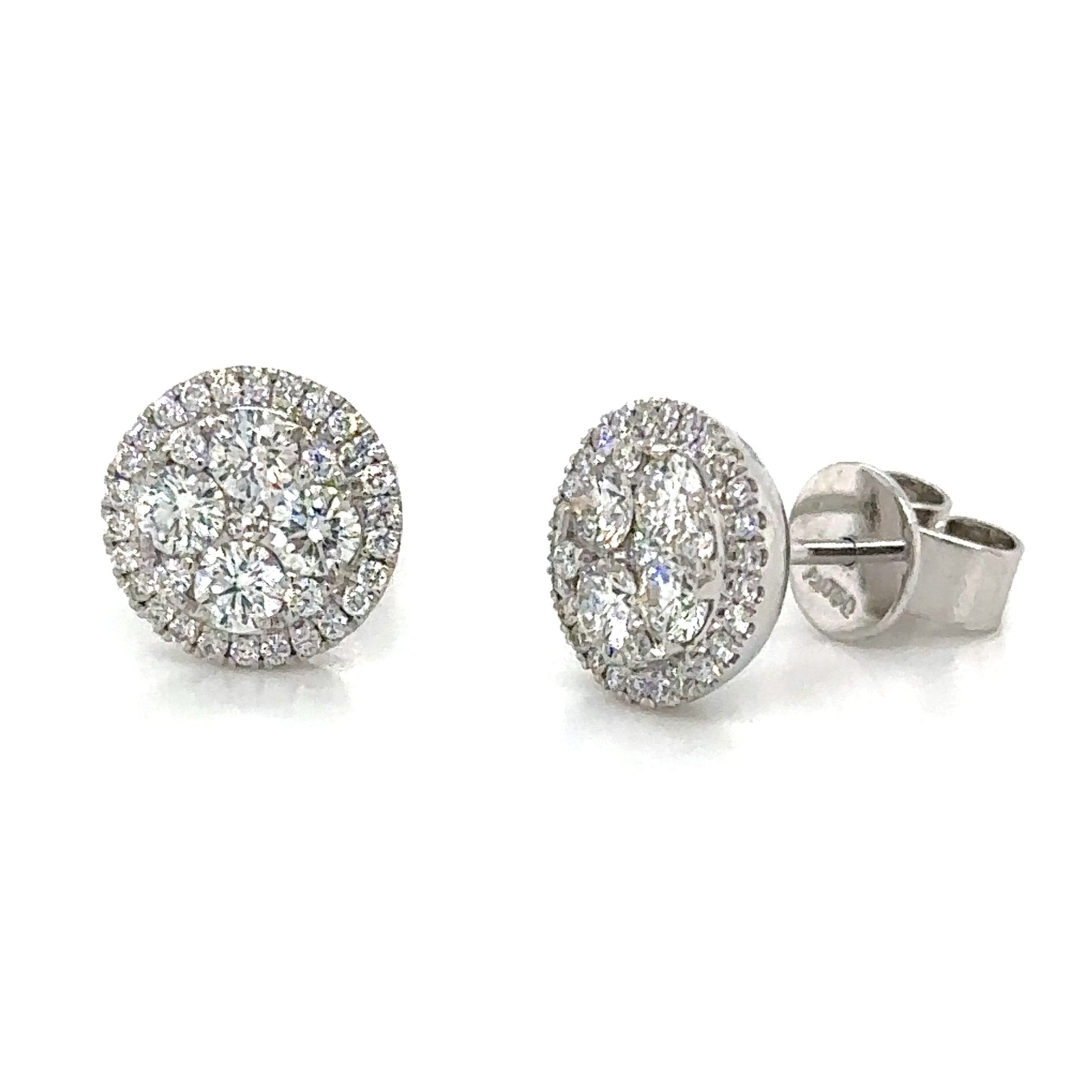 0.90ct tw Diamond Cluster Stud Earrings with Halo
