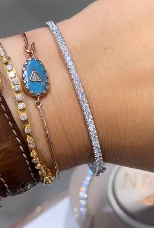 Bangles are great for stacking or solo! This 18kt white gold bracelet is simply covered round brilliant cut diamonds...