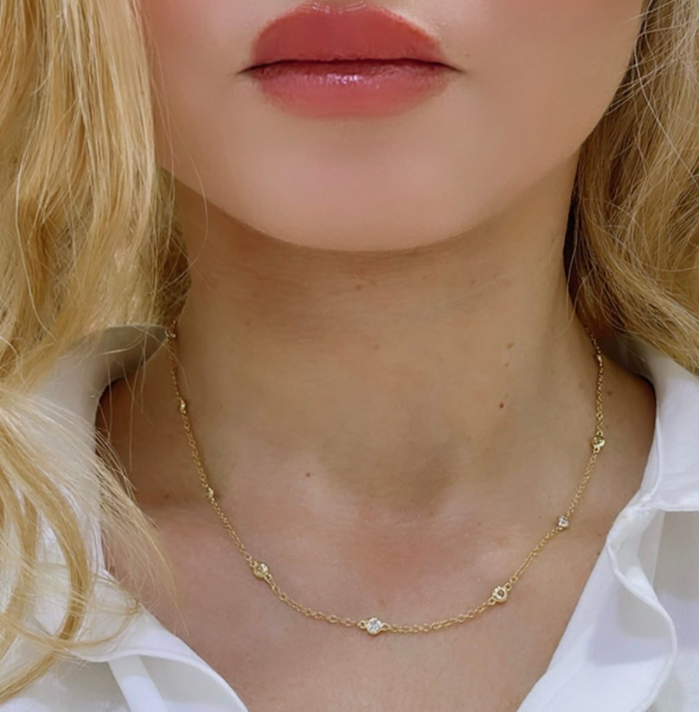 Sparkle and shine with our exquisite 0.96ct t.w. diamond bezel set diamond by the yard necklace! Individually bezel set diamonds dazzle along a delicate chain, adding elegance and luxury to any outfit. Radiate confidence and sophistication with this stunning piece.