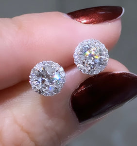 0.97ctw Round Cut Halo Diamond Stud Earrings