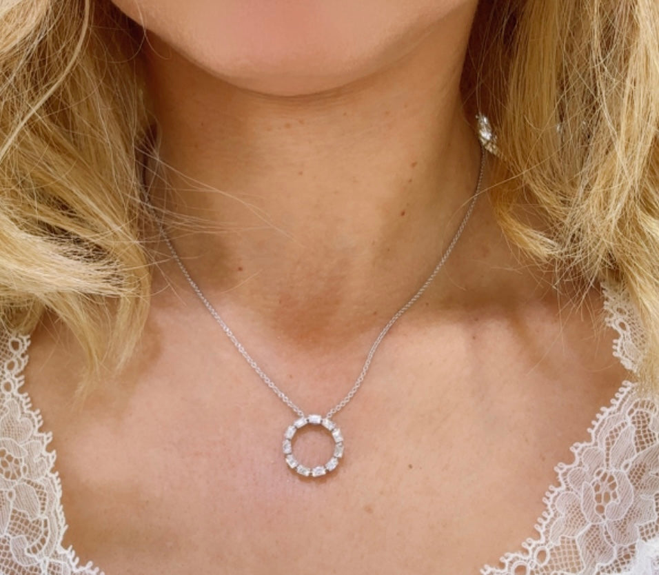 Discover the ultimate symbol of eternal love and interconnectedness with our 0.99ct tw diamond emerald-cut circle of life pendant necklace. Crafted with stunning emerald-cut diamonds, this necklace exudes elegance and sophistication while representing the eternal nature of life. A perfect gift for a loved one or a meaningful addition to your own collection.